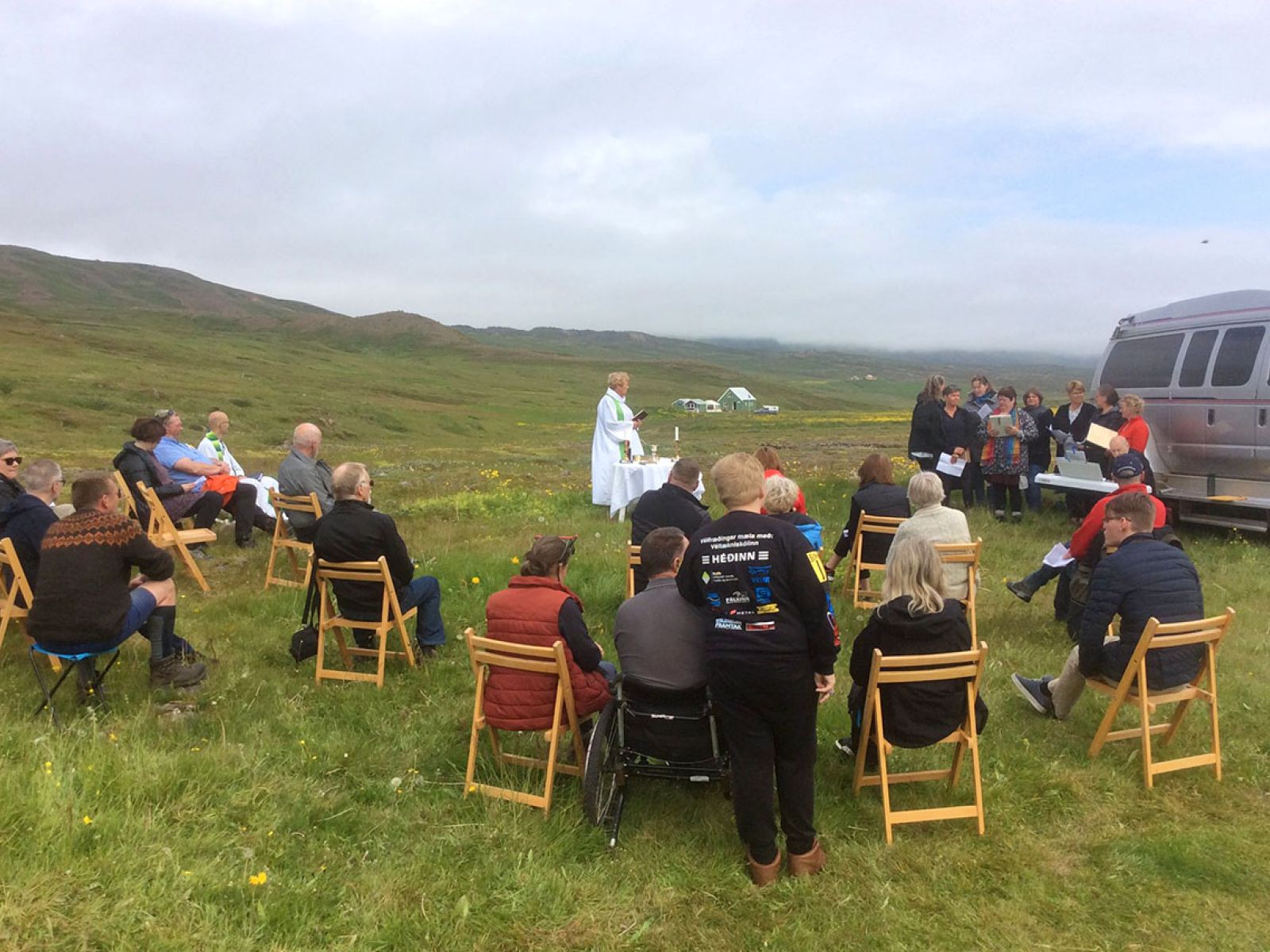 Messað undir berum himni í Loðmundarfirði
