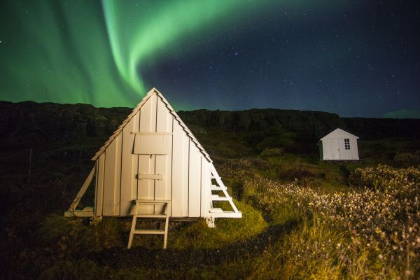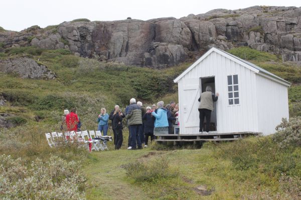 Gleði og fögnuður vegna margra ára farsælli endurbótavinnu við sumarhús,bátaskýli og umhverfi Kjarvalslunds í Hjaltastaðaþinghá var ástæða þess að rúmlega 20 manns létu þar sjá sig á laugardaginn var þrátt fyrir dimmu og drumbung í veðrinu.
