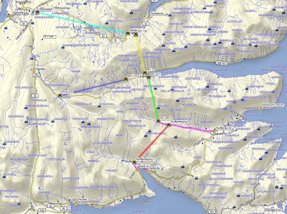 Nú var hins vegar verið að kynna fyrir mér hugmynd um 9 km löng göng milli Mjóafjarðar og Eyvindardals neðarlega á Fagradalsleið. Mér segja fróðir að þaðan sé snjólétt og greiðfær leið til Egilsstaða. Ef í stað Fjarðarheiðarganga yrðu boruð 5 km göng í Mjóafjörð og þaðan í Eyvindardal þá væri kominn kostur sem leysti bæði vetrareinangrun Seyðisfjarðar og Mjóafjarðar. Þessi kostur yrði ódýrari en Fjarðarheiðargöng. Með þessum göngum styttist leiðin milli Seyðisfjarðar og Reyðarfjarðar um 16 -17 km en lengist milli Seyðisfjarðar og Egilsstaða um 2 – 3 km. Áfram er auðvitað opið megnið af árinu um Fjarðarheiði. Ef þessi leið yrði farin þá ætti einungis eftir að bora 6,4 km göng frá Mjóafirði í Fannardal til að tengja Seyðisfjörð við Fjarðarbyggð og til að ljúka heilsárs tengingu alls Mið-Austurlands.