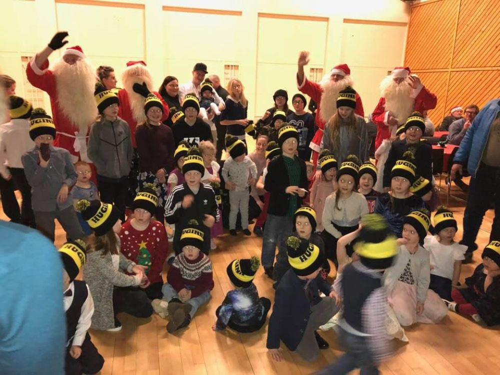 Frá jólaballi í Herðubreið 2017 þar sem jólasveinarnir færðu börnunum Huginshúfur.