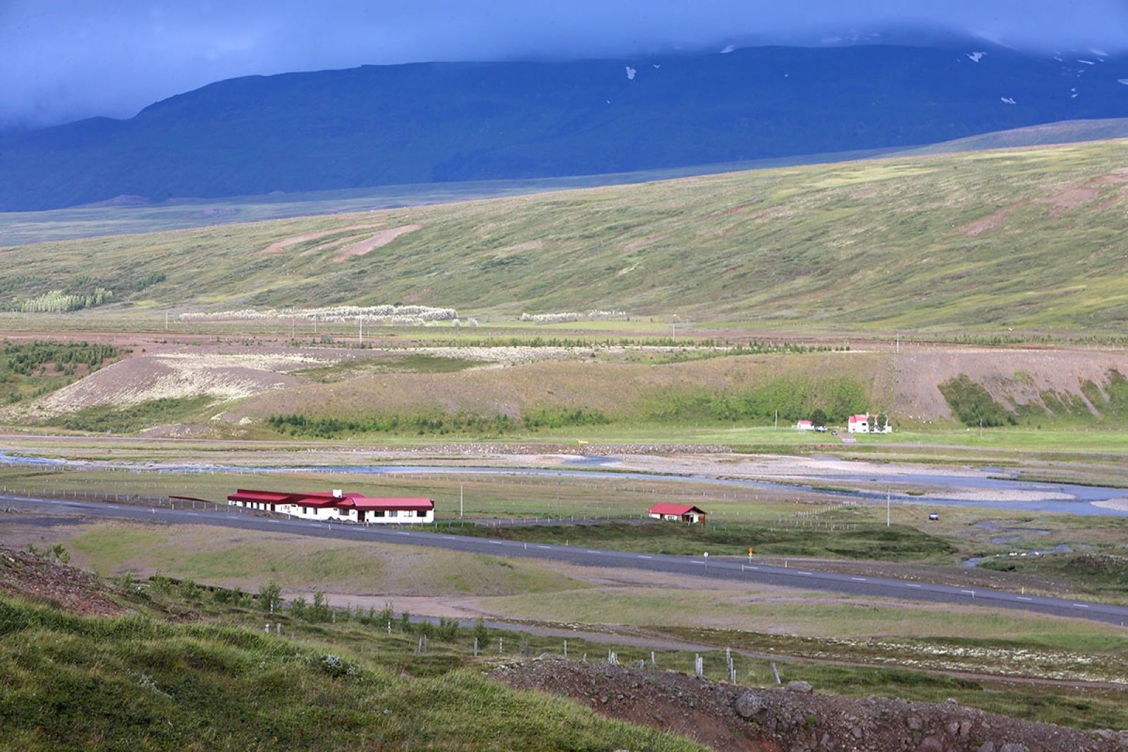 Séð yfir núverandi veiðihús við Hofsá, Árhvamm, í austur að Þorbrandsstöðum.