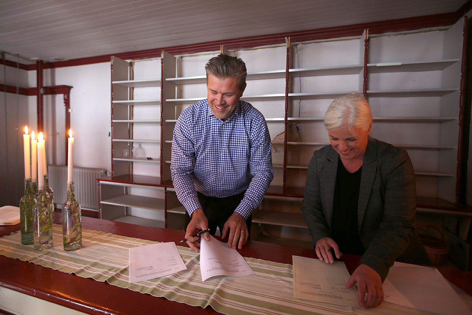Það voru Bjarni Benediktsson, fjármálaráðherra og Aðalheiður Borgþórsdóttir, bæjarstjóri, sem skrifuðu undir samkomulag um þetta í húsinu í gær.
