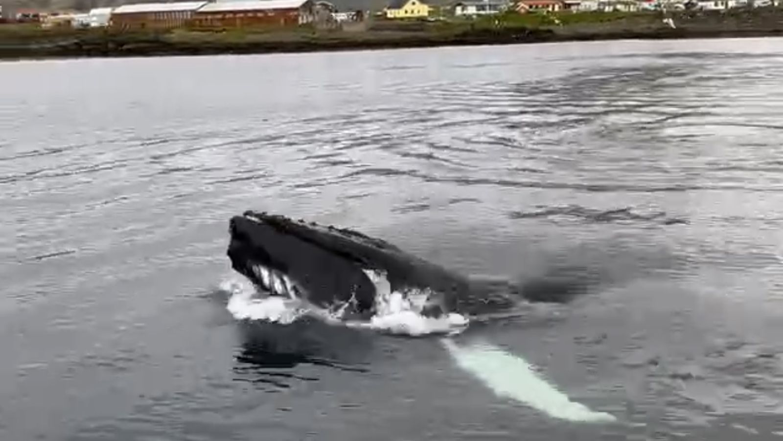 „Í Bræðsluvikunni sáust að minnsta kosti tíu hnúfubakar inni á firði í einu, þar af komu fimm inn undir bryggju. Í síðustu viku kom einn alla leið inn í höfn,“ segir Karl.