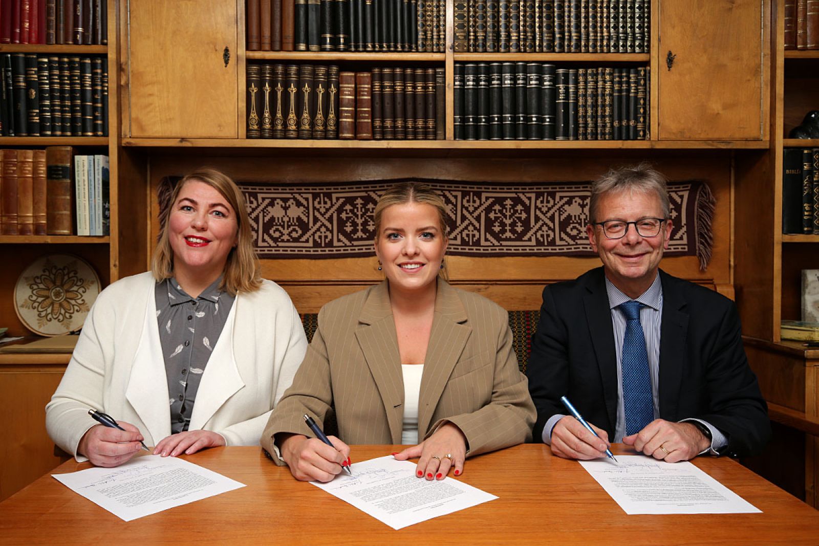Það voru Bryndís Ford, skólameistari Hallormsstaðaskóla, Áslaug Arna Sigurbjörnsdóttir, háskóla-, iðnaðar- og nýsköpunarráðherra og Jón Atli Benediktsson, rektor HÍ, sem undirrituðu viljayfirlýsinguna á Hallormsstað í gærkvöldi.