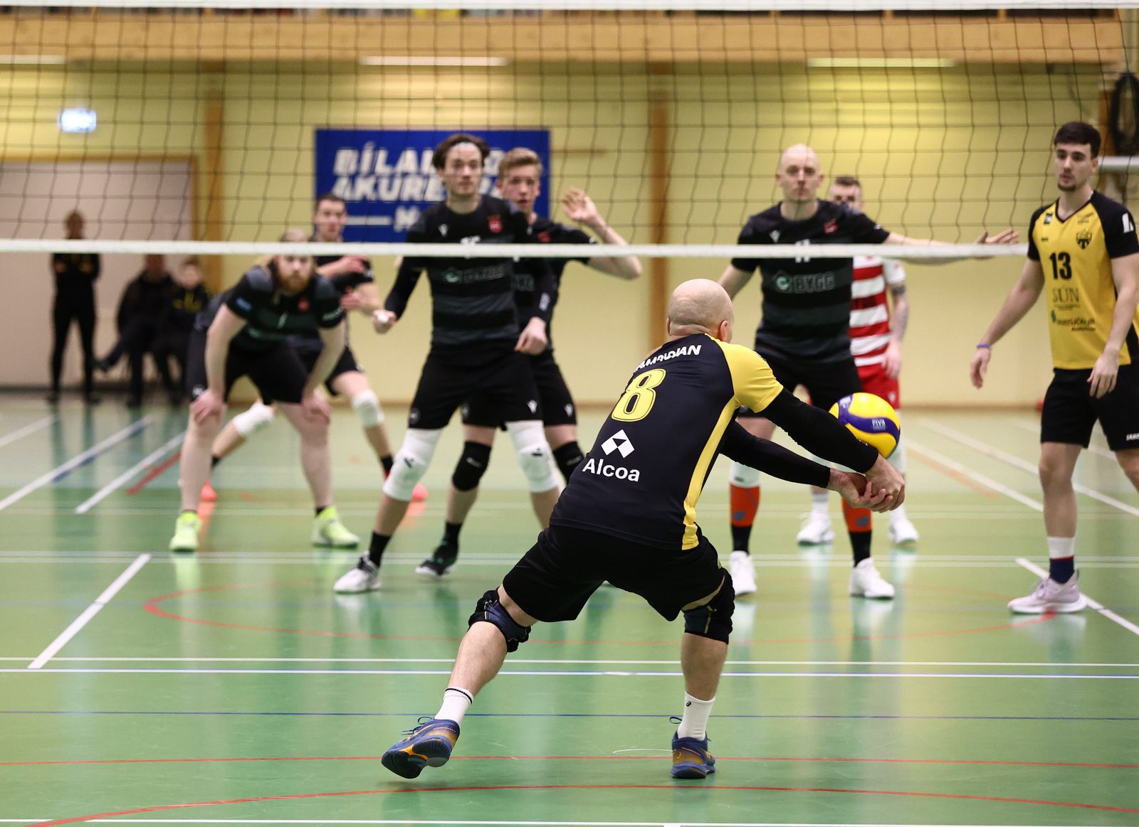 Ísfirðingar höfðu yfirburði í fyrstu tveimur hrinunum sem þeir unnu 25-19 og 25-18.