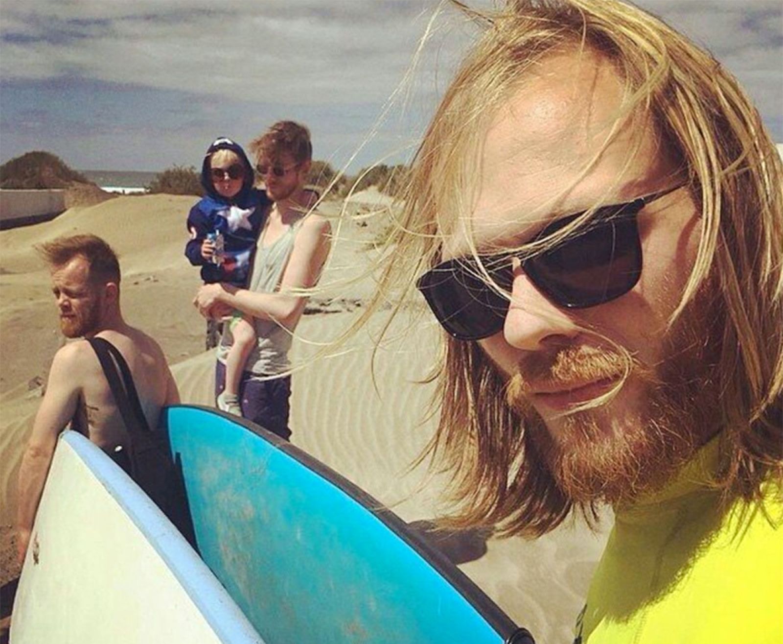 Ívar Pétur á ferð með FM Belfast á Kanaríeyjum. Mynd: Úr einkasafni