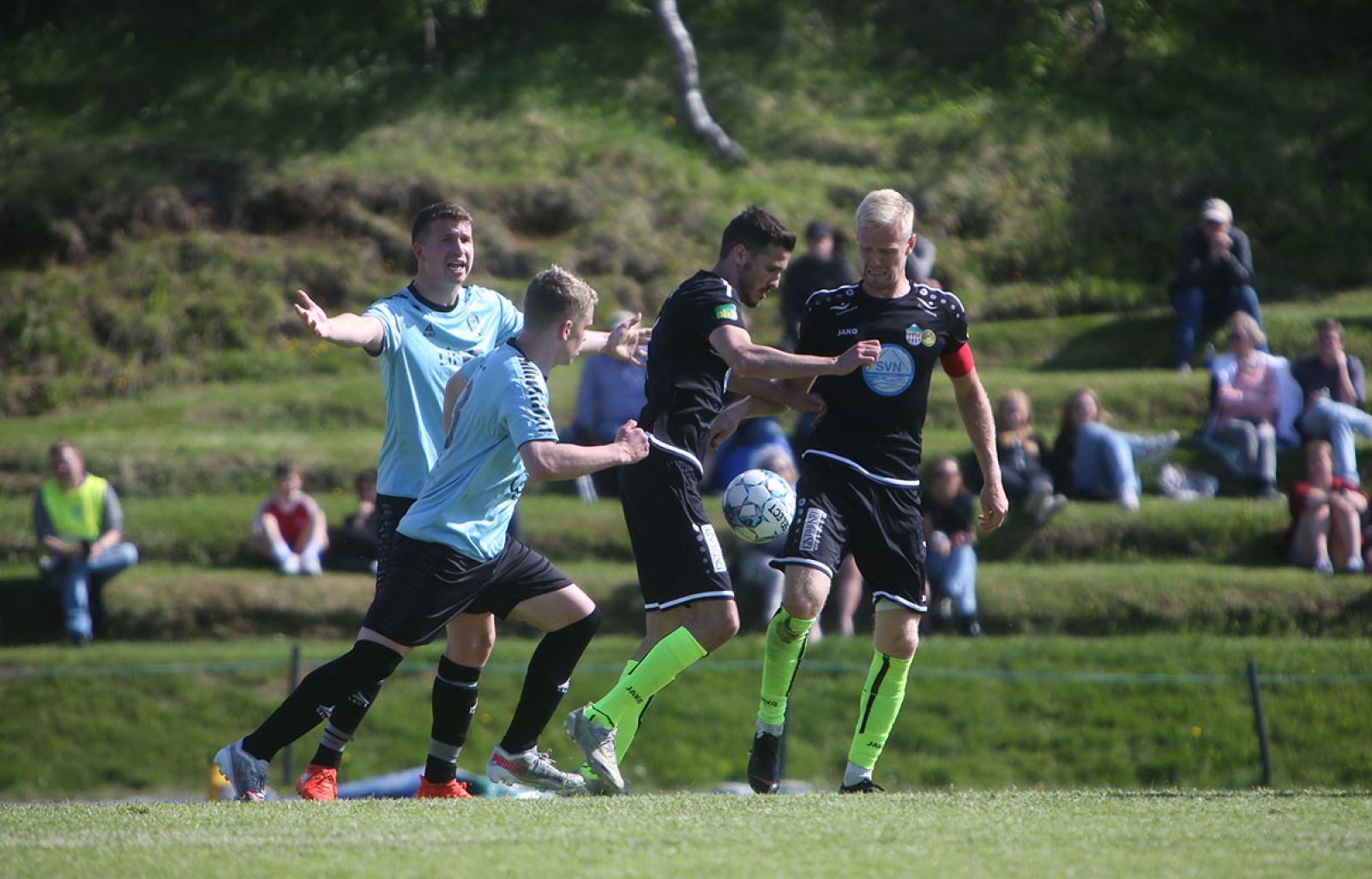 Sæbjörn Guðlaugsson kom þeim yfir á 19. mínútu og Stefan Spasic í 2-0 á 41. mínútu. Gestirnir minnkuðu muninn með marki úr vítaspyrnu í uppbótartíma fyrri hálfleik og jöfnuðu svo með marki í uppbótartíma seinni hálfleiks.