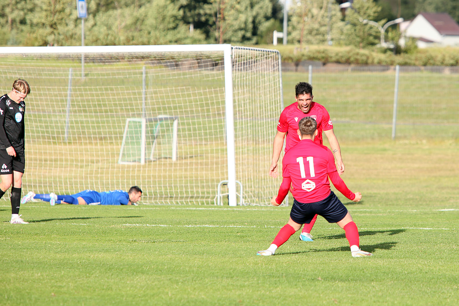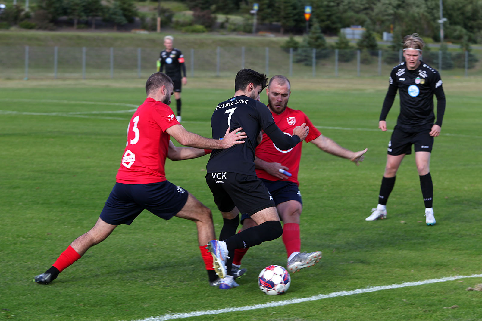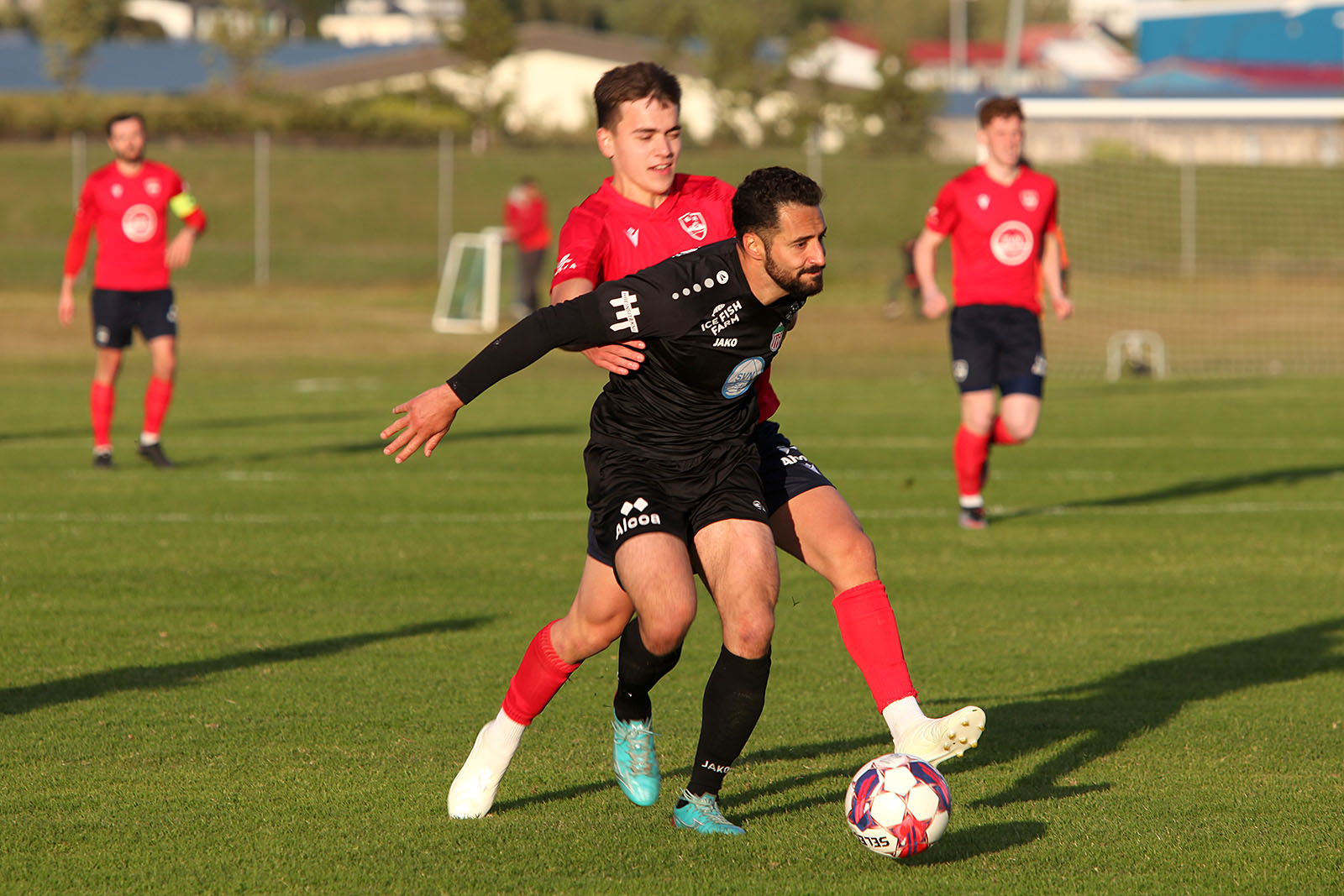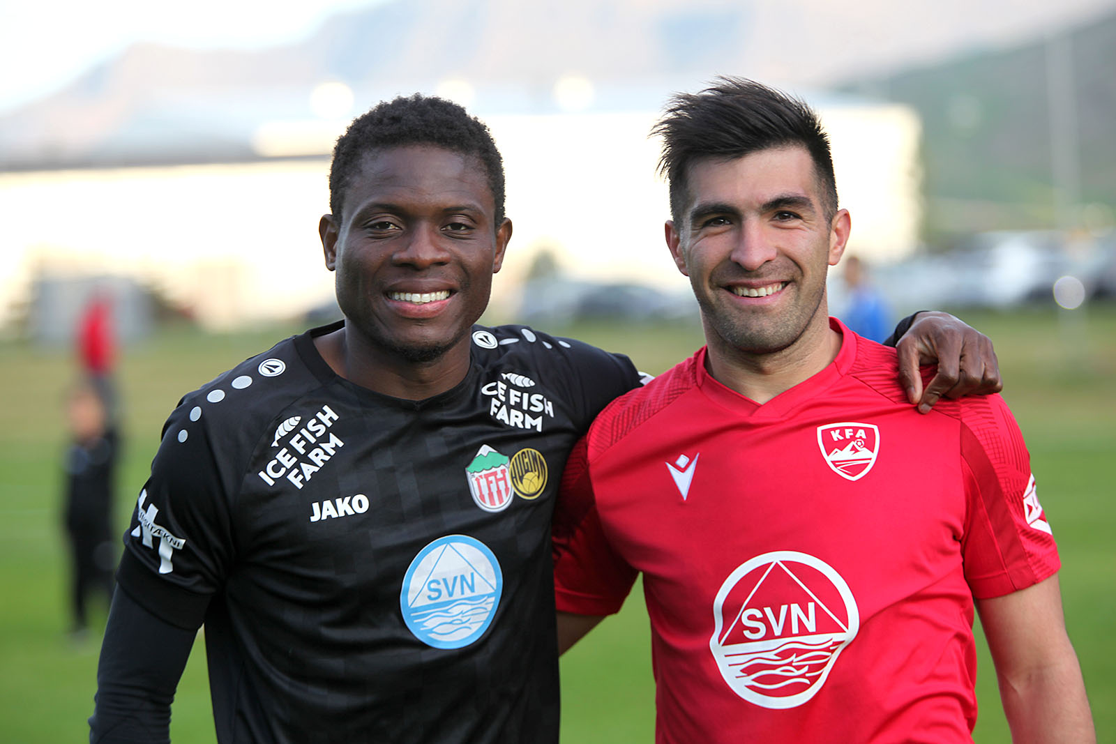 KFA gerði út um leikinn með þremur mörkum á átta mínútum undir lok fyrri hálfleiks. Það fyrsta skoraði Esteban Selpa með skoti utan teigs á 30. mínútu.