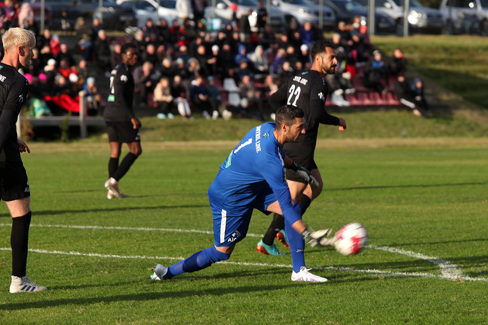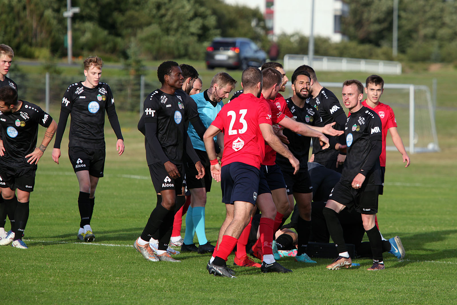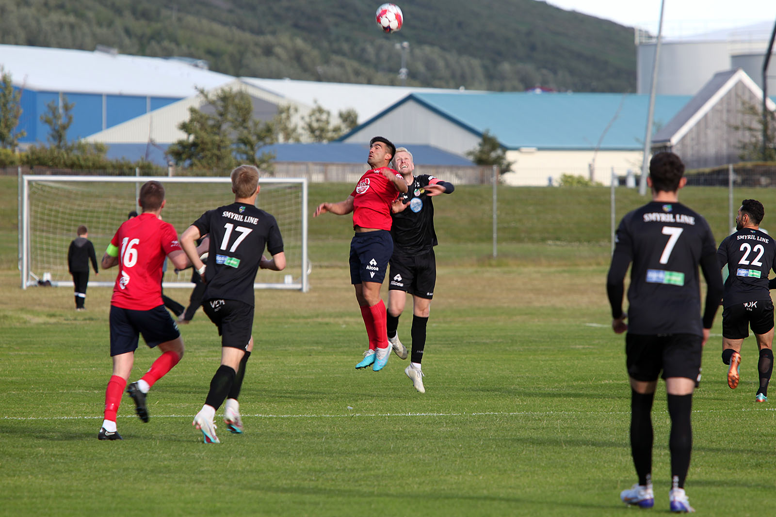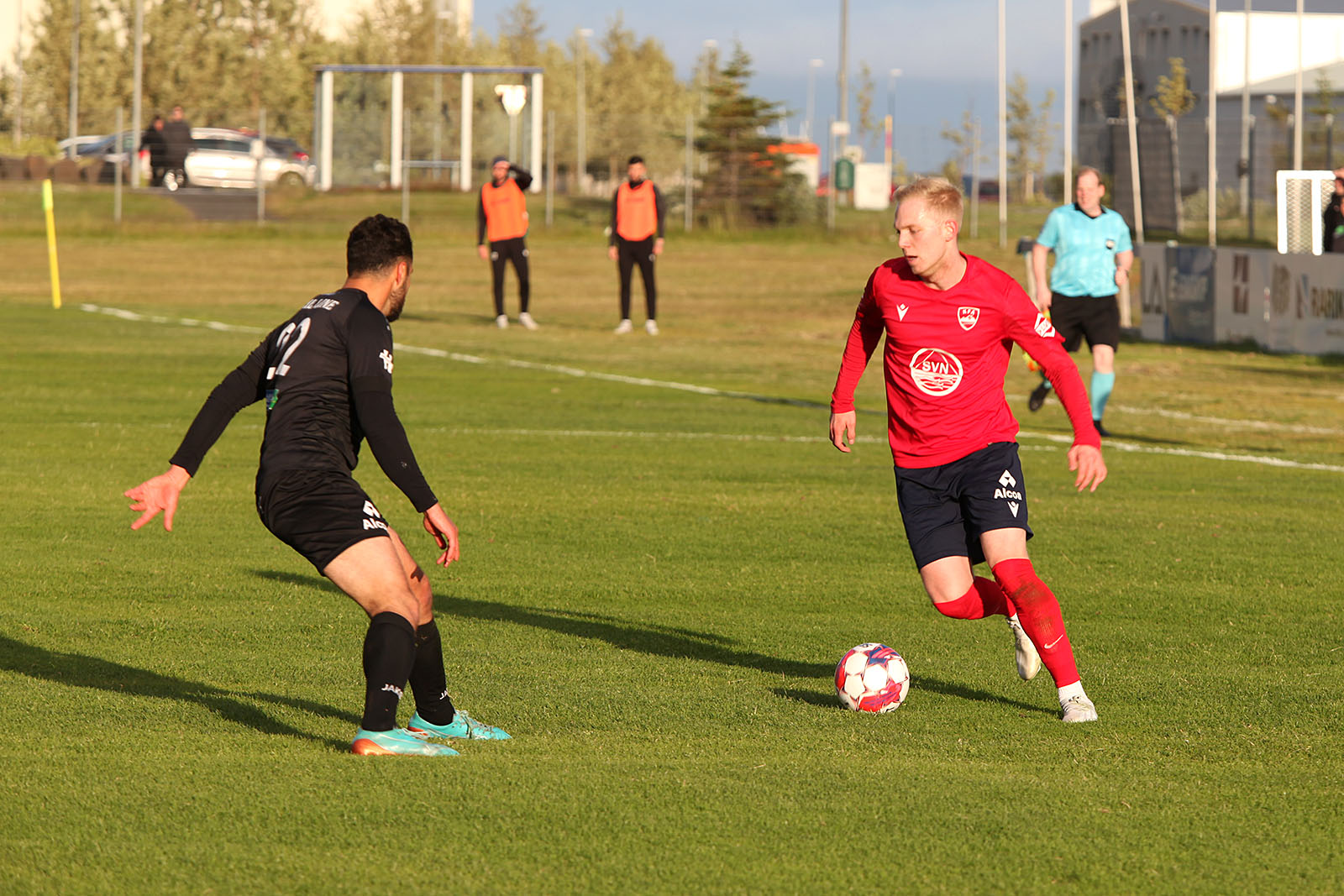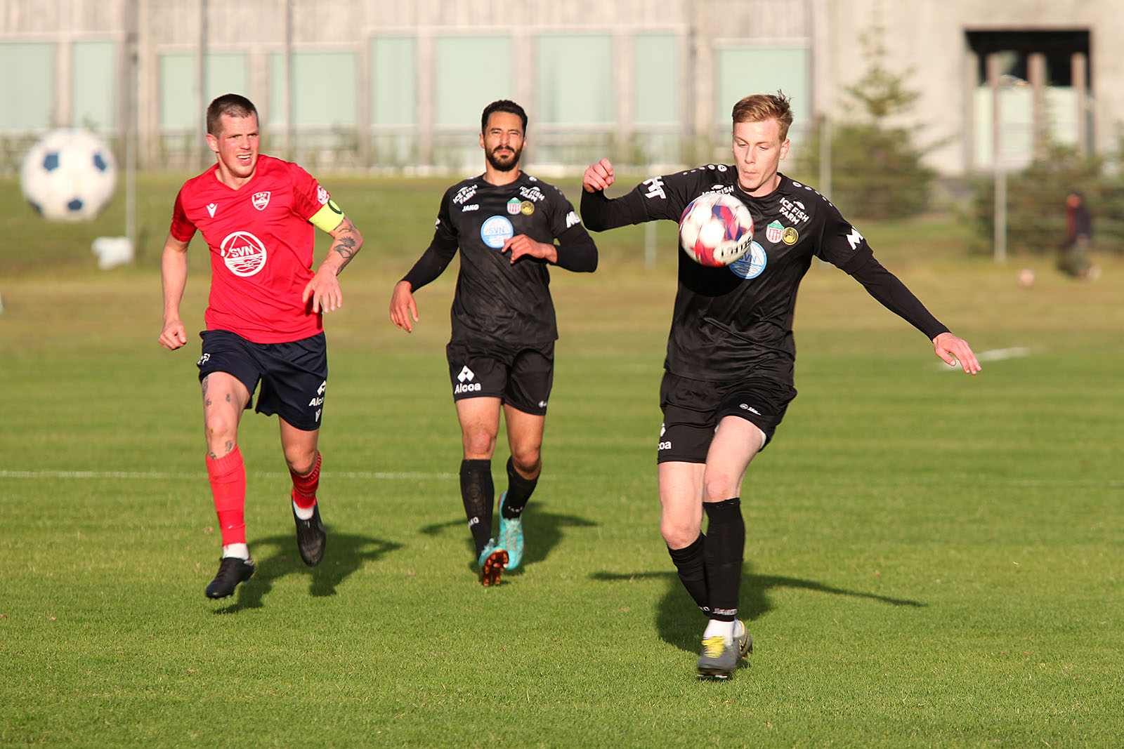 KFA gerði út um leikinn með þremur mörkum á átta mínútum undir lok fyrri hálfleiks. Það fyrsta skoraði Esteban Selpa með skoti utan teigs á 30. mínútu.