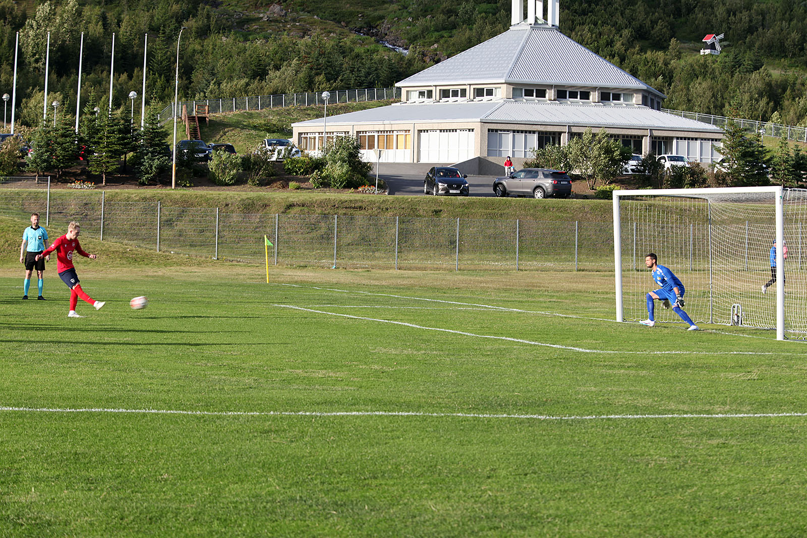 Þá hafði KFA skorað tvö mörk í viðbót. Danilo Milenkovic skoraði það fyrra á 37. mínútu þegar hann fylgdi eftir vítaspyrnu Marteins Más Sverrissonar sem Aleksandar Marinkovic hafði varið en fyrir markið. Mínútu síðar kom þriðja markið þegar Aleksandar misreiknaði hornspyrnu og Unnar Ari Hansson skallaði boltann inn af fjærstöng.