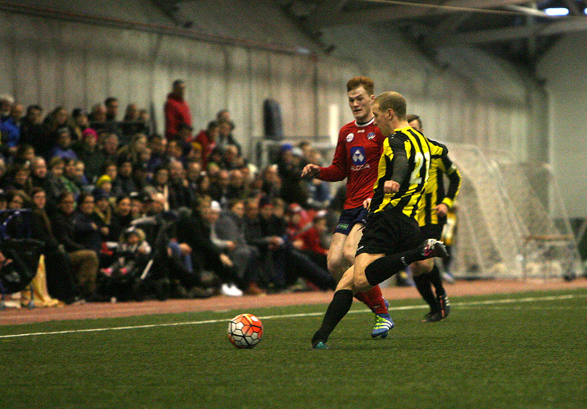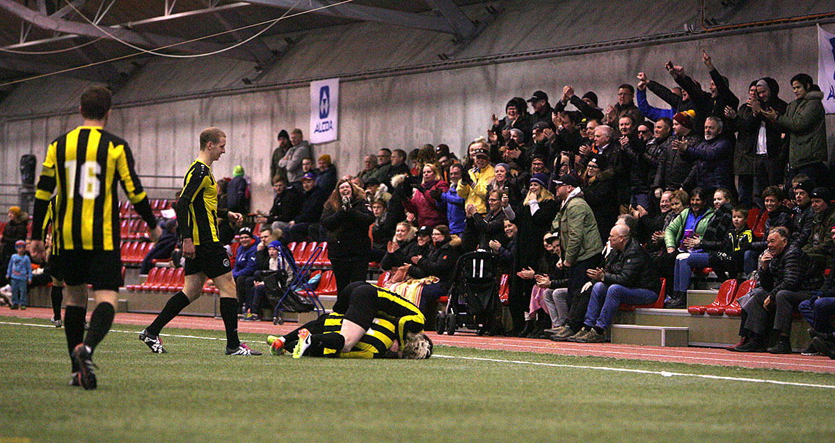 Þegar liðin höfðu jafnað út varnarmistökin voru Huginsmenn miklu sterkari. Fylgjendur þeirra voru að minnsta kosti helmingur áhorfenda, sátu þétt saman og létu vel heyra í sér.