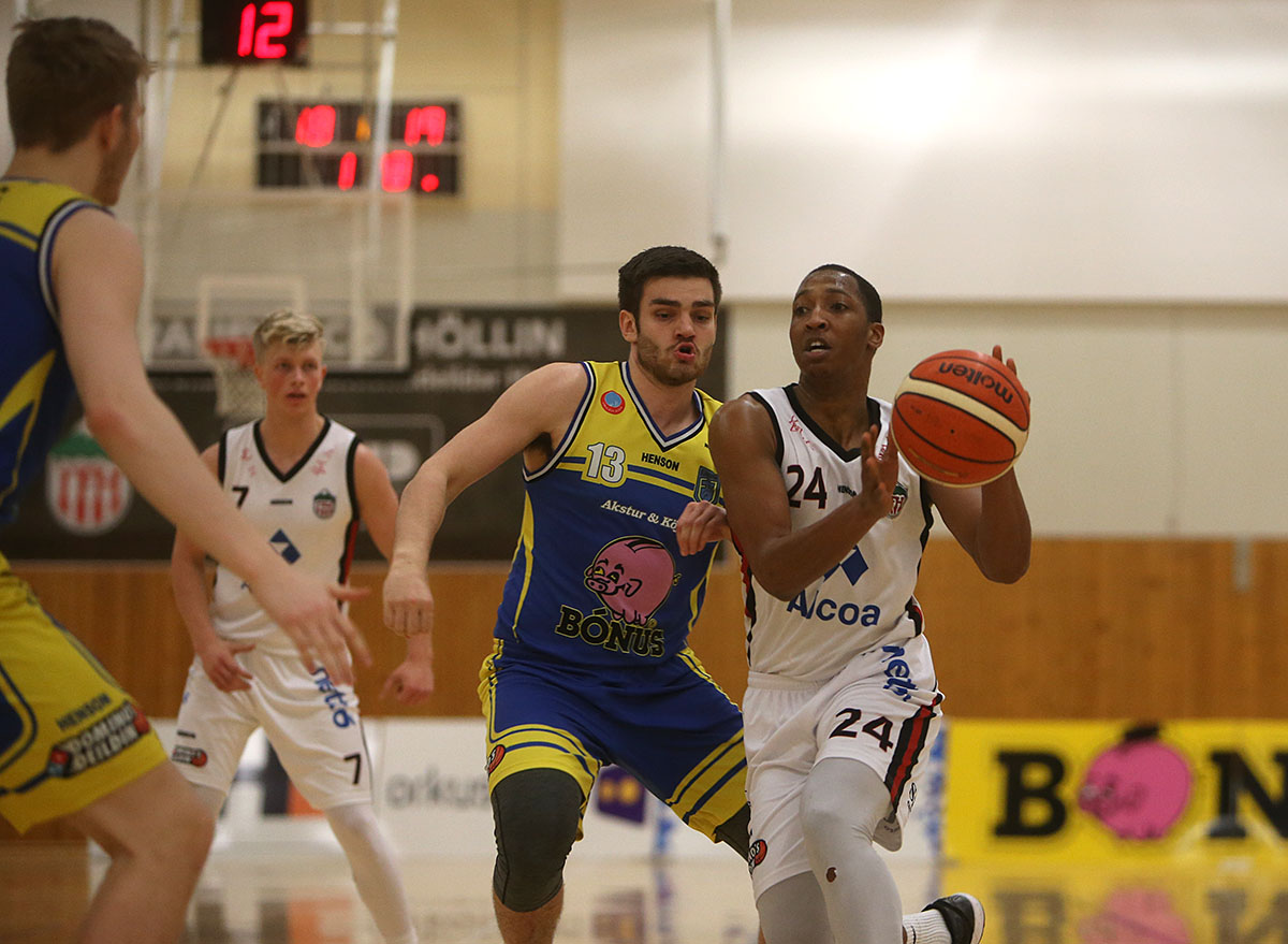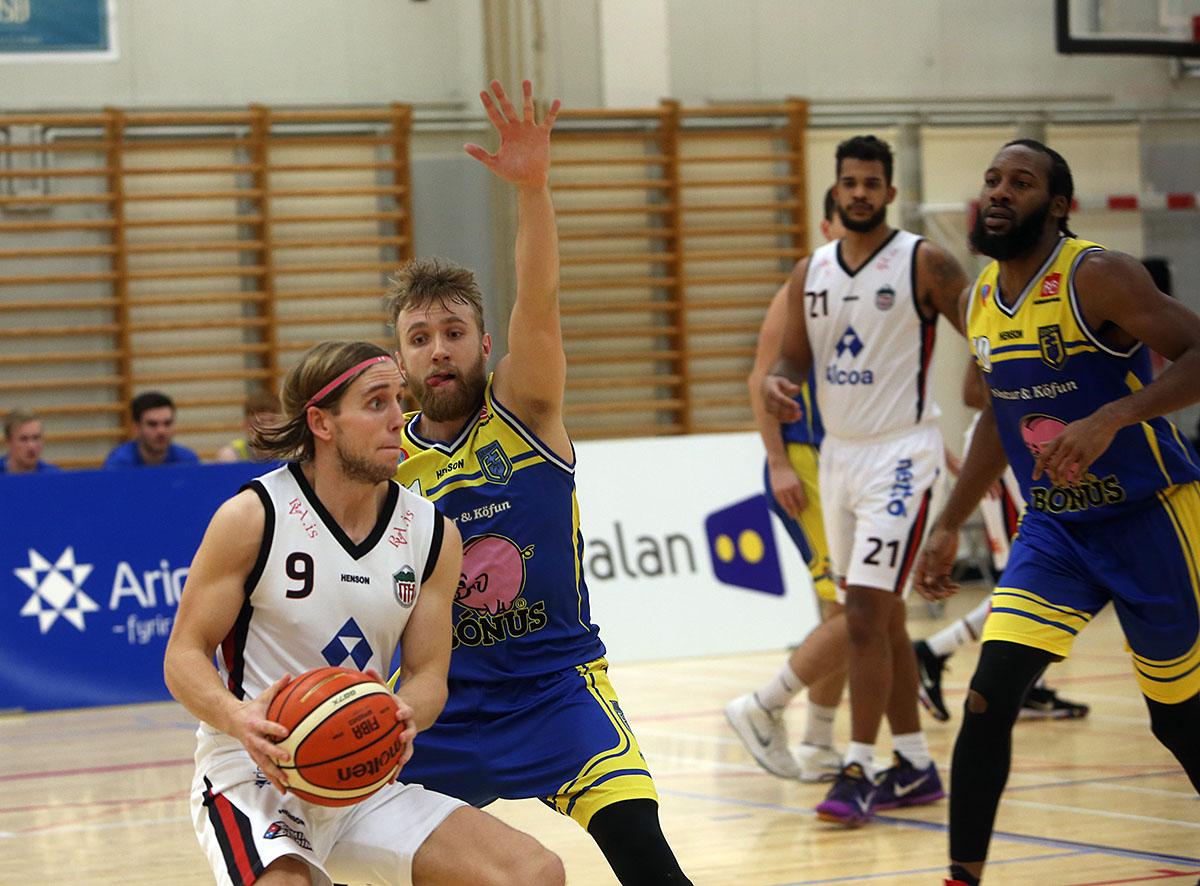 Með sigrinum jafnaði Höttur Fjölni að stigum en bæði lið eru með 18 stig. Þór Akureyri er fjórum stigum á undan í efsta sætinu. „Við ætlum okkur að vera í sníkjunni þar á eftir og vonast til að Þór stígi á reimarnar einhvers staðar á sinni leið. Ef við náum þeim ekki er heimaleikjarétturinn mikilvægur, einkum ef Vestri kemst í úrslitakeppnina. Einni bílfærð færra á Ísafjörð er gott fyrir mjaðmirnar á þjálfaranum.“