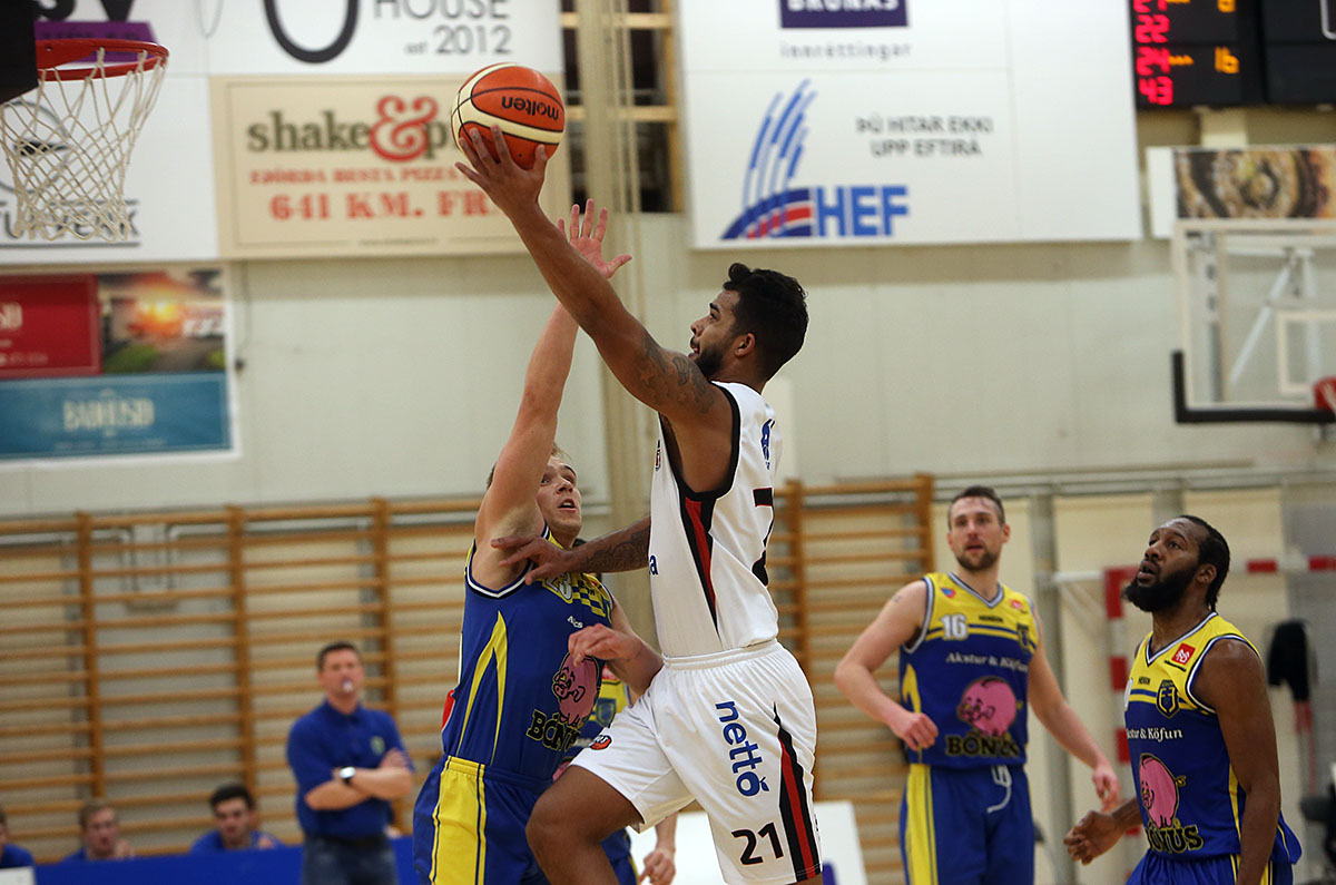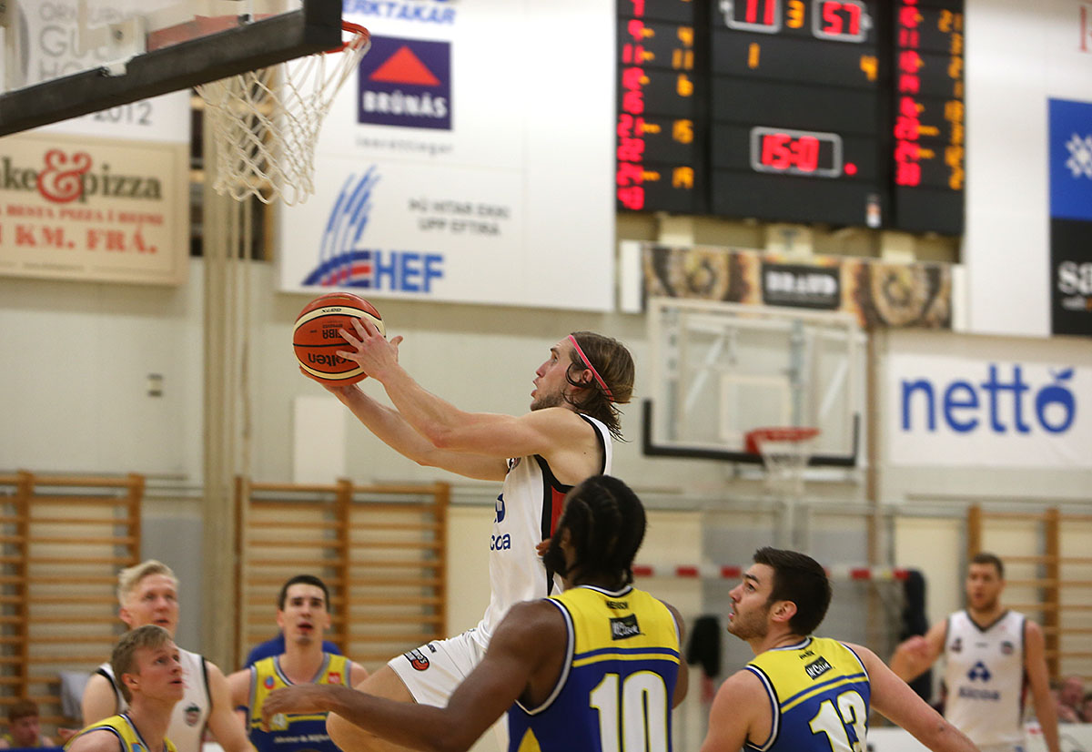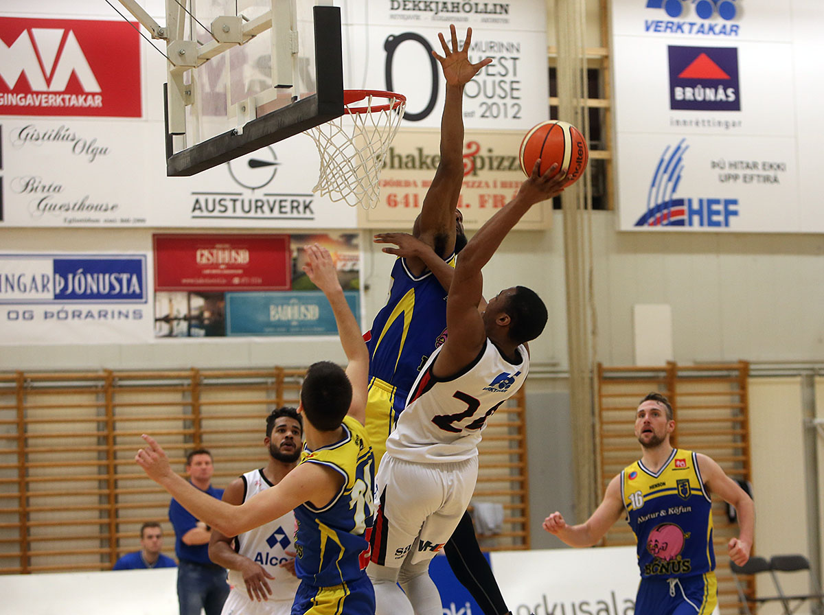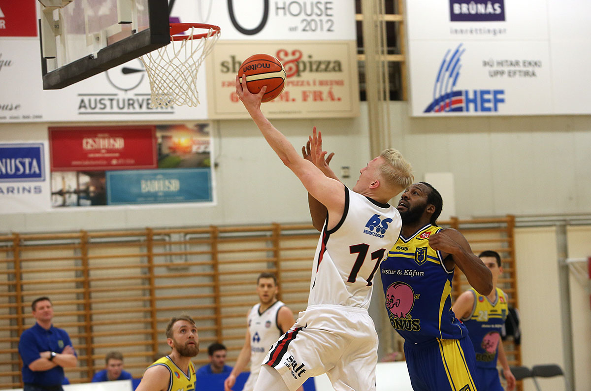 Það var öflugt því bæði Charles Clark og André Huges voru báðir komnir í þrjár villur. Þeir spiluðu hins vegar vel í seinni hálfleik þar sem Höttur náði fljótt 15 stiga forustu hélst til leiksloka. Clark skoraði 29 stig áður en yfir lauk og Huges 15 auk þess að taka tíu fráköst. Eysteinn Bjarni Ævarsson skoraði líka 15 stig og Dino Stipcic 14 auk þess að taka tíu fráköst.