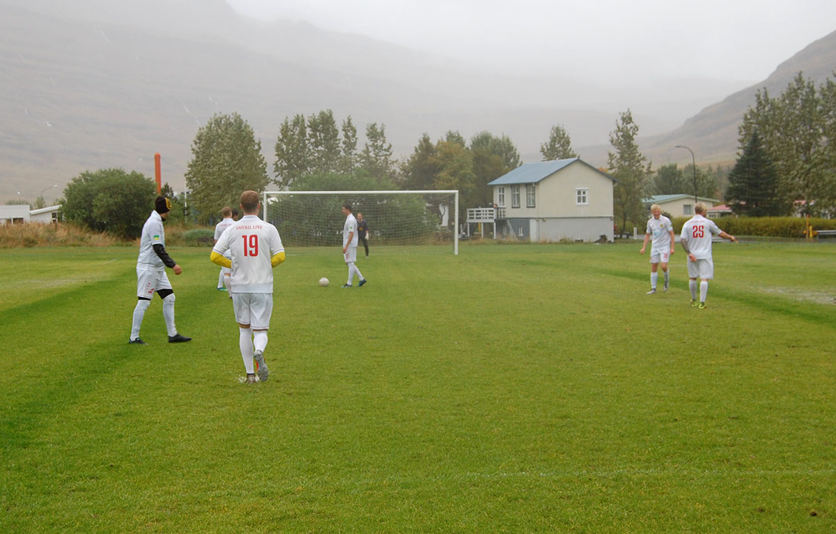 Þangað mættu dómarar leiksins og Völsungar klukkutíma fyrir leik og stuðningsmenn, sem gert höfðu sér ferð frá Húsavík, um kortéri fyrir leik. Stemmingin var nokkuð súr þar sem ekkert bólaði á Huginsmönnum og skánaði ekki þegar fréttir bárust af því, rétt eftir að rúta stuðningsmannanna renndi í hlað, að búið væri að merkja Seyðisfjarðarvöll og leikmenn Hugins væru þar tilbúnir til leiks.