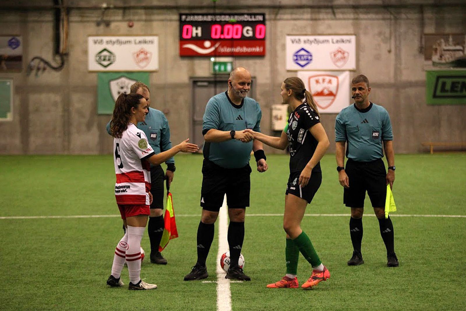 Mér fannst vera smá stress í okkur í fyrri hálfleik. Þær sóttu hratt á okkur með löngum boltum sem við réðum ekki nógu vel við. Þess vegna var ég ánægð með að vera 1-0 yfir í hálfleik. Við vissum að við gætum tekið yfir seinni hálfleikinn með mörkum, sem við gerðum. Í lokin var aftur komið smá stress í okkur þannig að skipulagið skorti en við héldum út.“