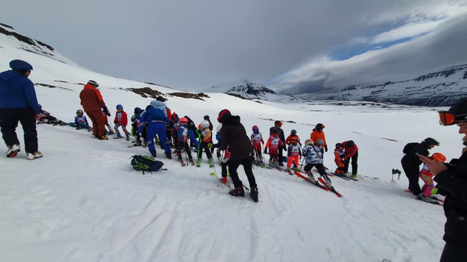 Mynd: Frá móti 9 ára og yngri í Stafdal á laugardaginn var. Þó veðrið hefði ekki verið með besta móti þann dag létu börnin það ekkert á sig fá. Mynd SKÍS