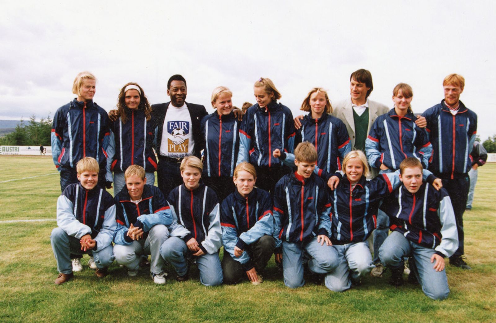 Pele ásamt kvennaliði Hattar sem í lok sumars tryggði sér sæti í efstu deild. Á myndinni eru frá vinstri í aftari röð: Oddný Freyja Jökulsdóttir, Þórdís Þórdís Björg Ingólfsdóttir, Pelé, Ragnheiður Bergdís Bryndísardóttir, Íris Hrafnkelsdóttir, Vordís Svala Jónsdóttir, Ásgeir Sigurvinsson, Jóhanna Bjarnveig Magnúsdóttir og Hilmar Gunnlaugsson.