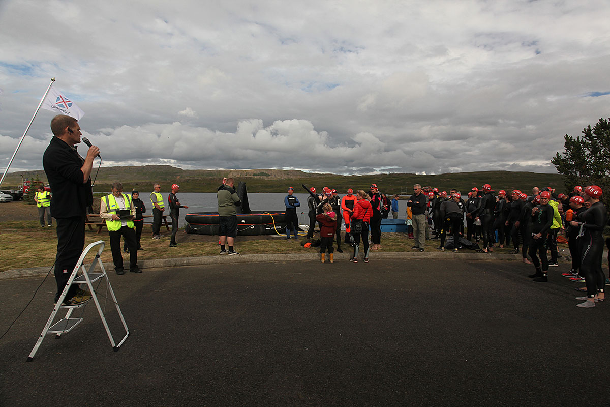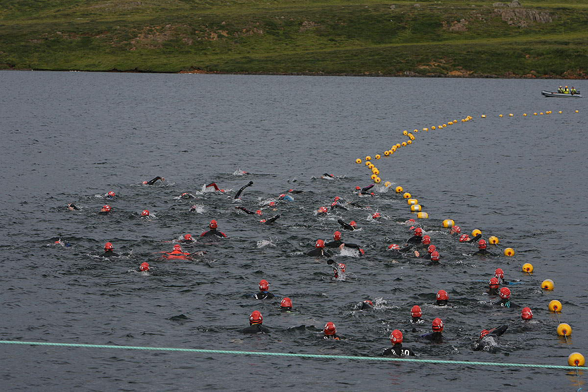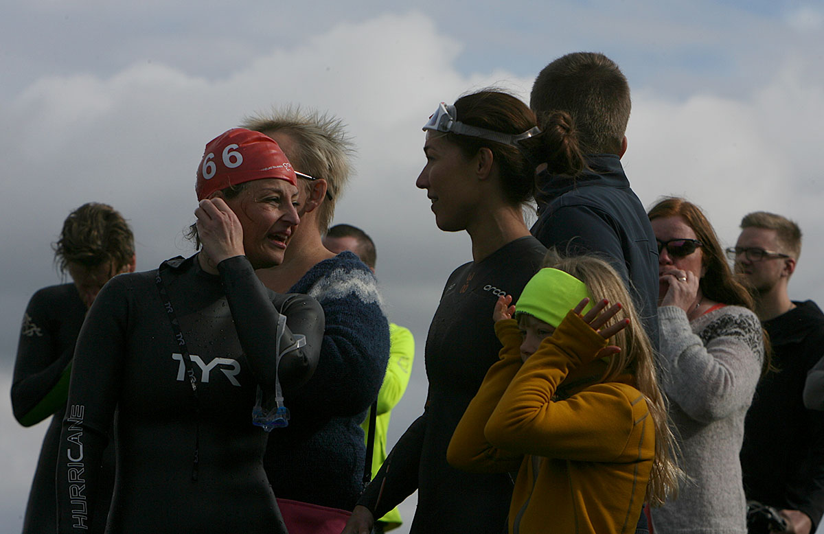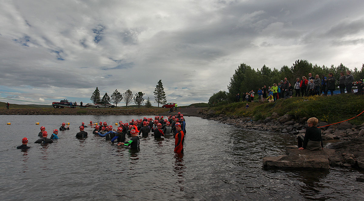Aðstæður voru ákjósanlegar á laugardagsmorguninn, lítill vindur þannig vatnið var nokkuð kyrrt og um 16 stiga heitt. Tæplega 120 keppendur fóru í vatnið, ríflega helmingi fleiri en síðustu ár og voru þeir ræstir í tveimur hópum.