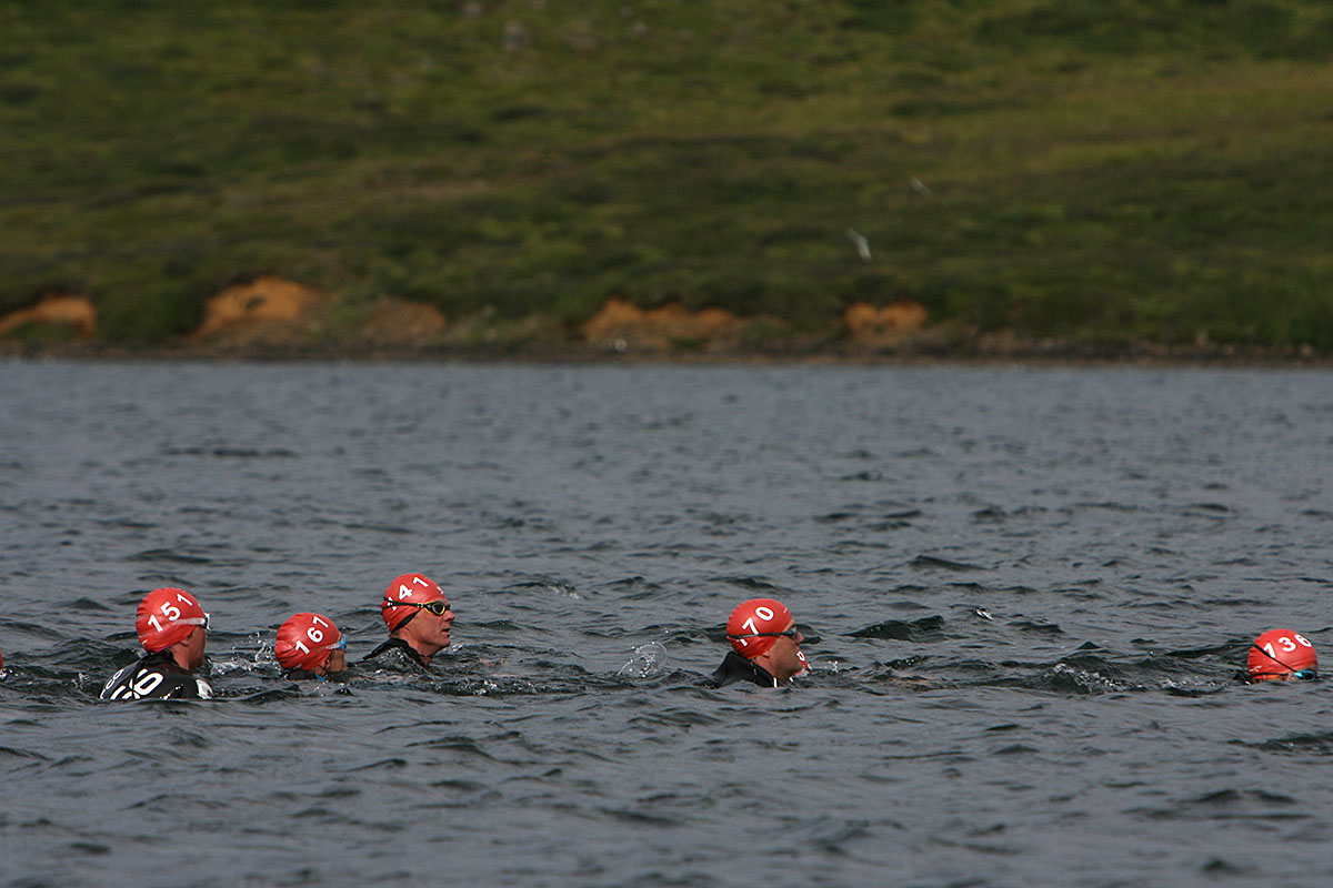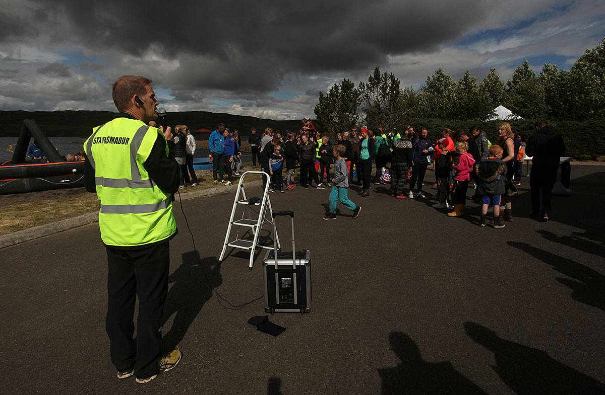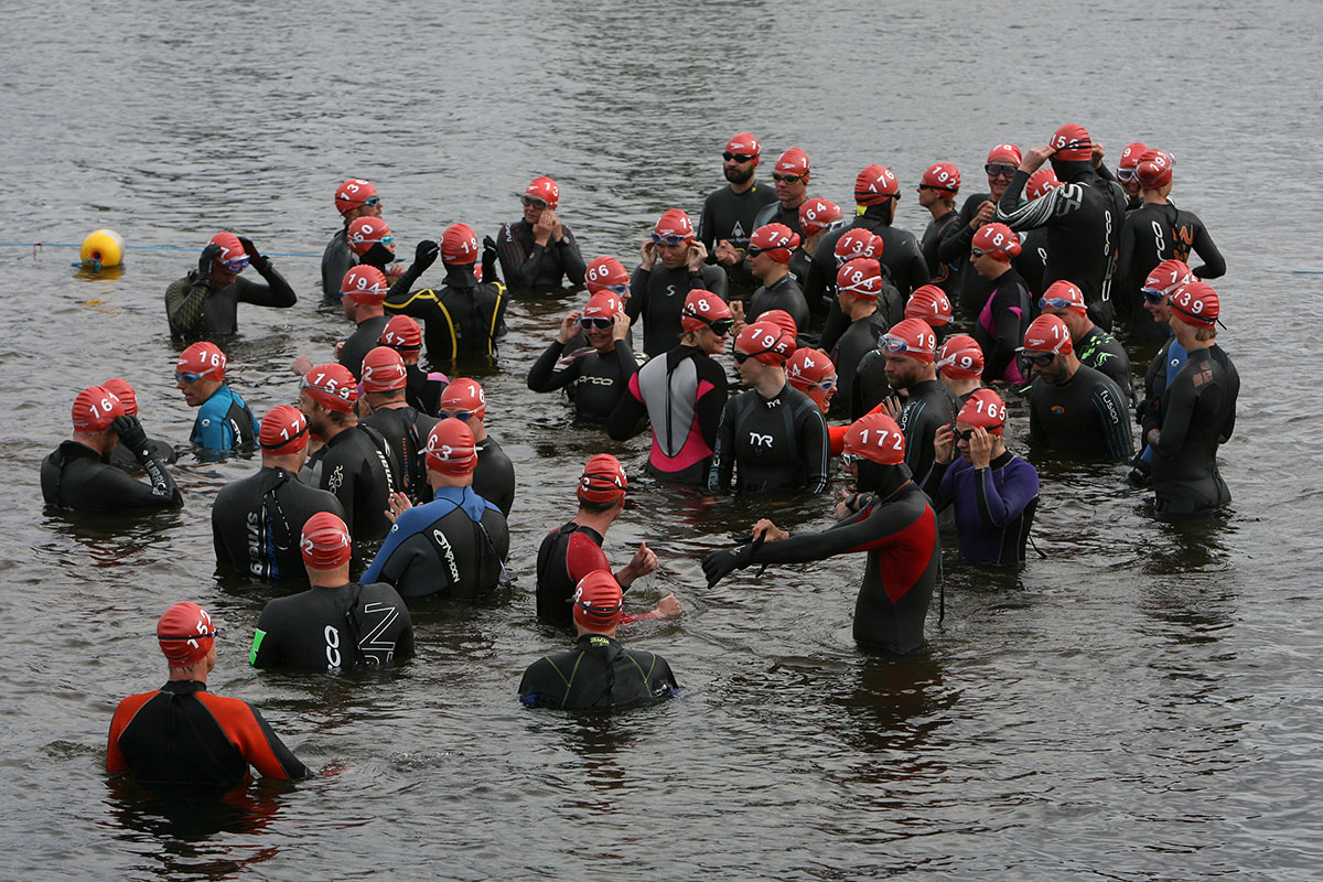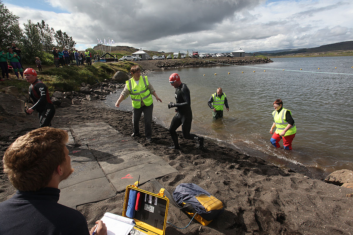Aðstæður voru ákjósanlegar á laugardagsmorguninn, lítill vindur þannig vatnið var nokkuð kyrrt og um 16 stiga heitt. Tæplega 120 keppendur fóru í vatnið, ríflega helmingi fleiri en síðustu ár og voru þeir ræstir í tveimur hópum.