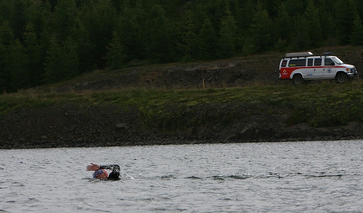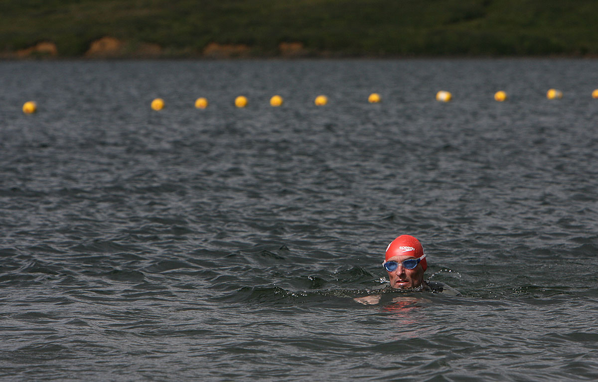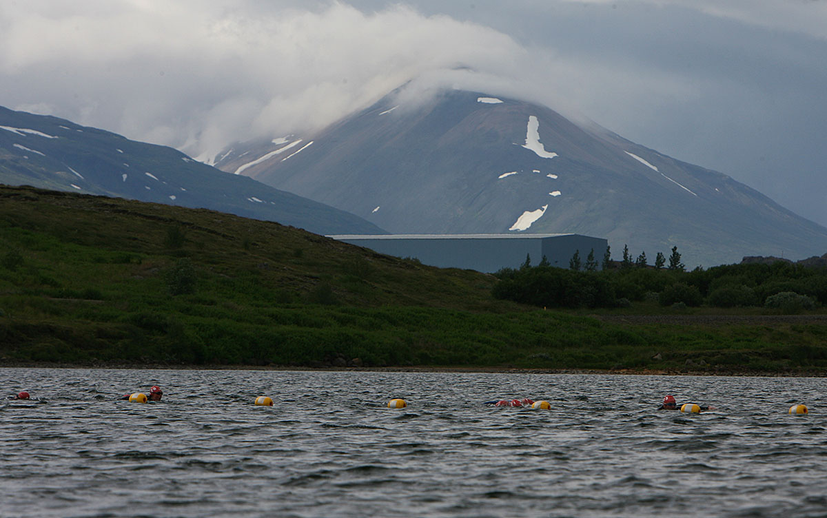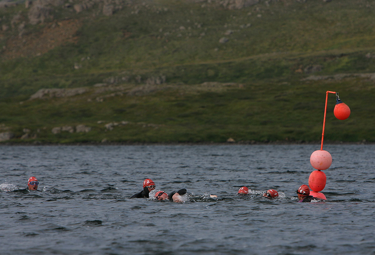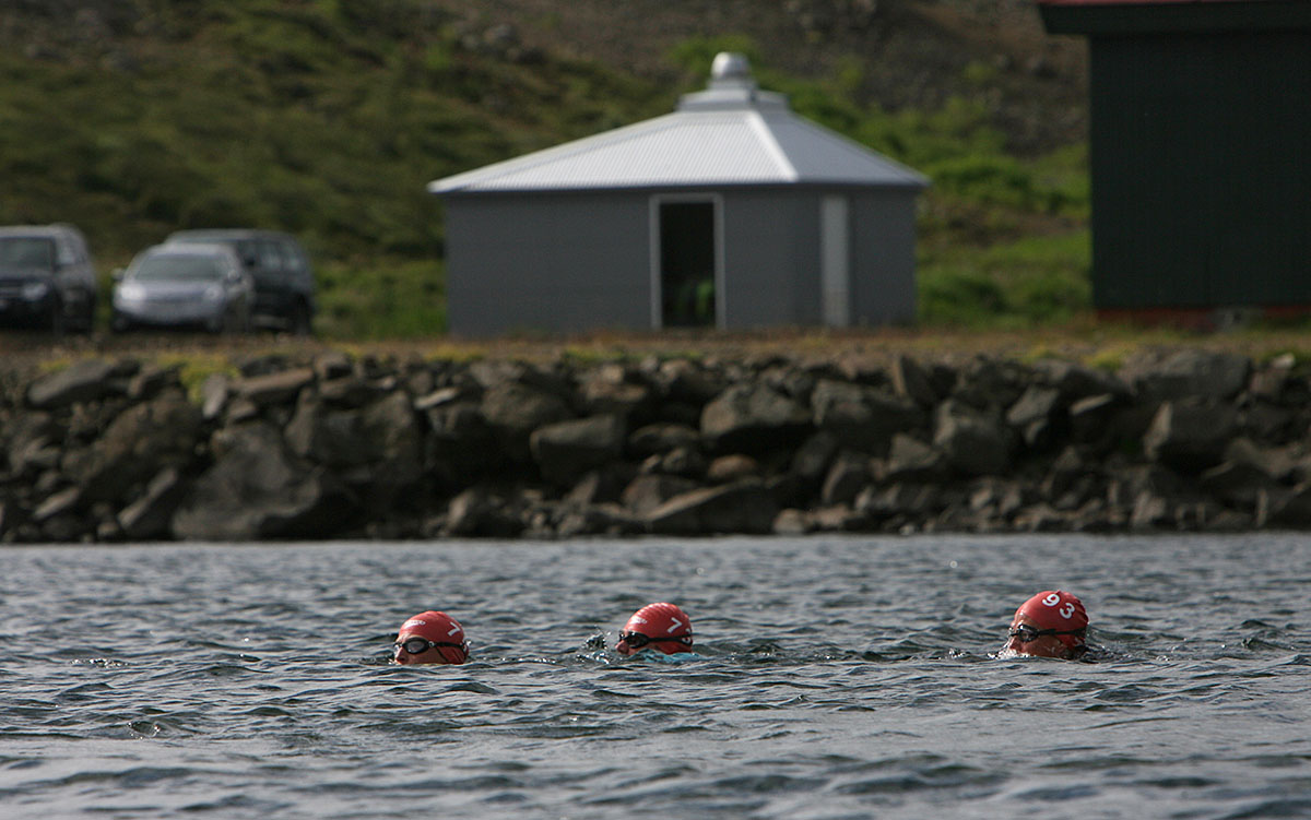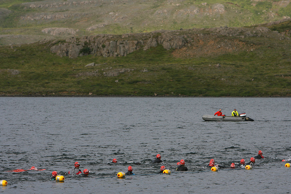 Ræst var í víkinni við hitaveituskúrana og synt að bauju rétt við bæinn Urriðavatn og þaðan tilbaka, alls 2,5 km.