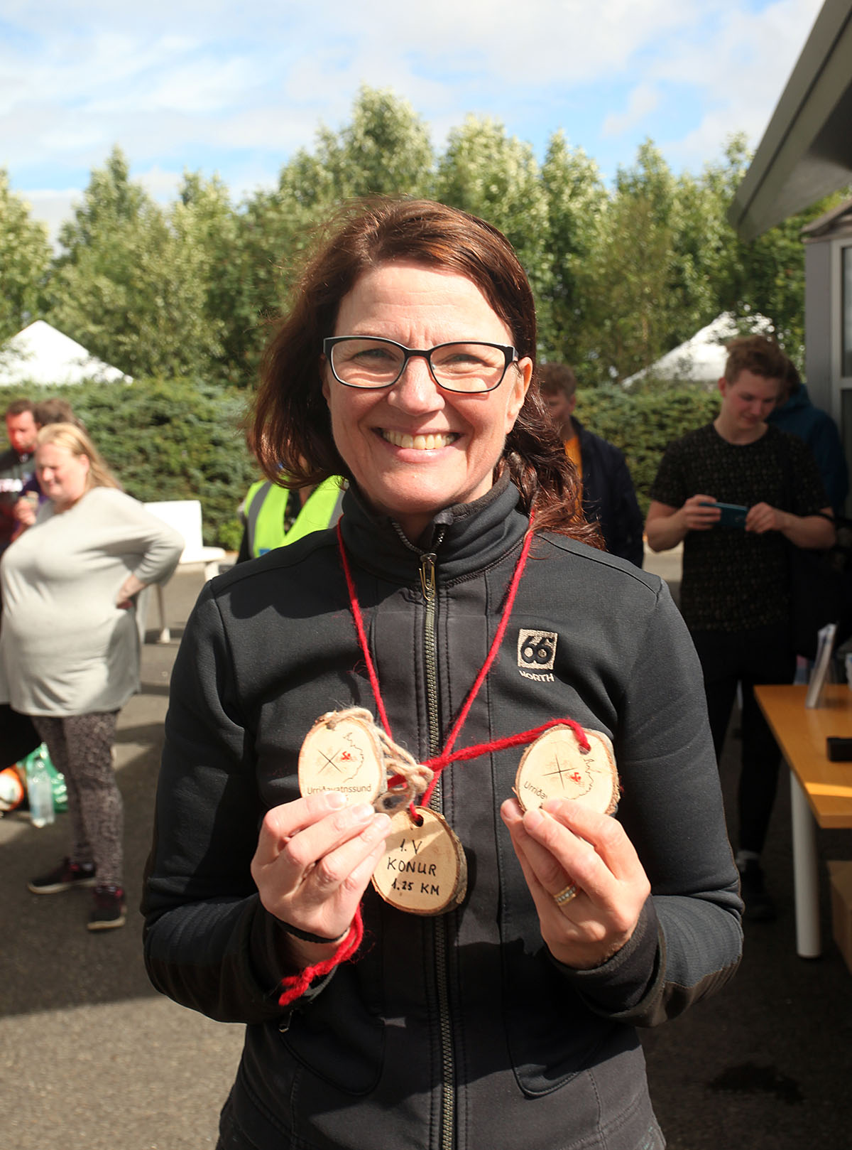 Katrín varð fyrst kvenna á 49:26 en Sigrún Hallgrímsdóttir var skammt á eftir henni á 49:43. Þriðja varð Gréta Björg Jakobsdóttir á 50:44.