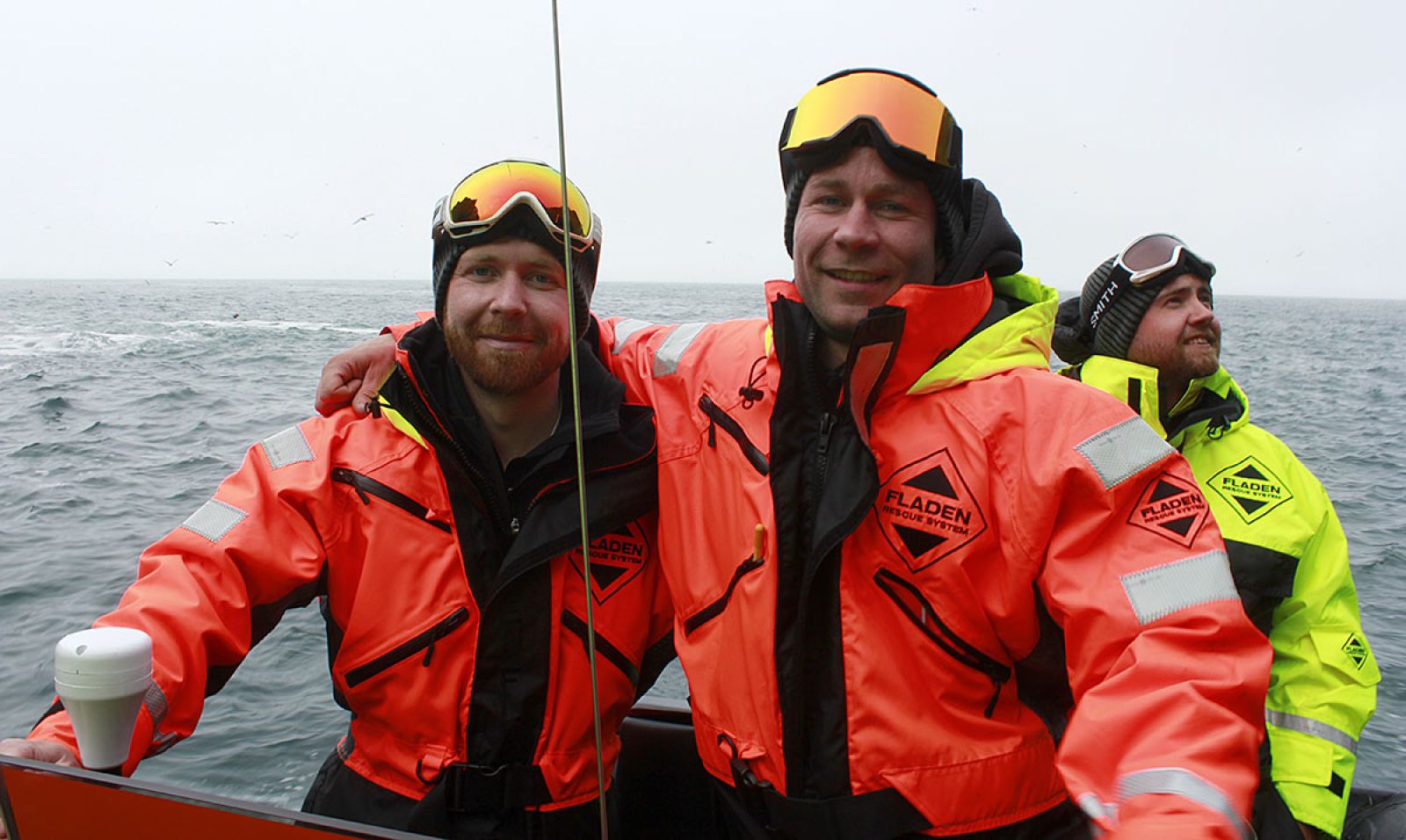 Bræðurnir við stjórn. Hallur er mestmegnis við stjórn á bátnum á meðan Magnús gætir að öryggi og leiðsegir um forvitnilega hluti á leiðinni.