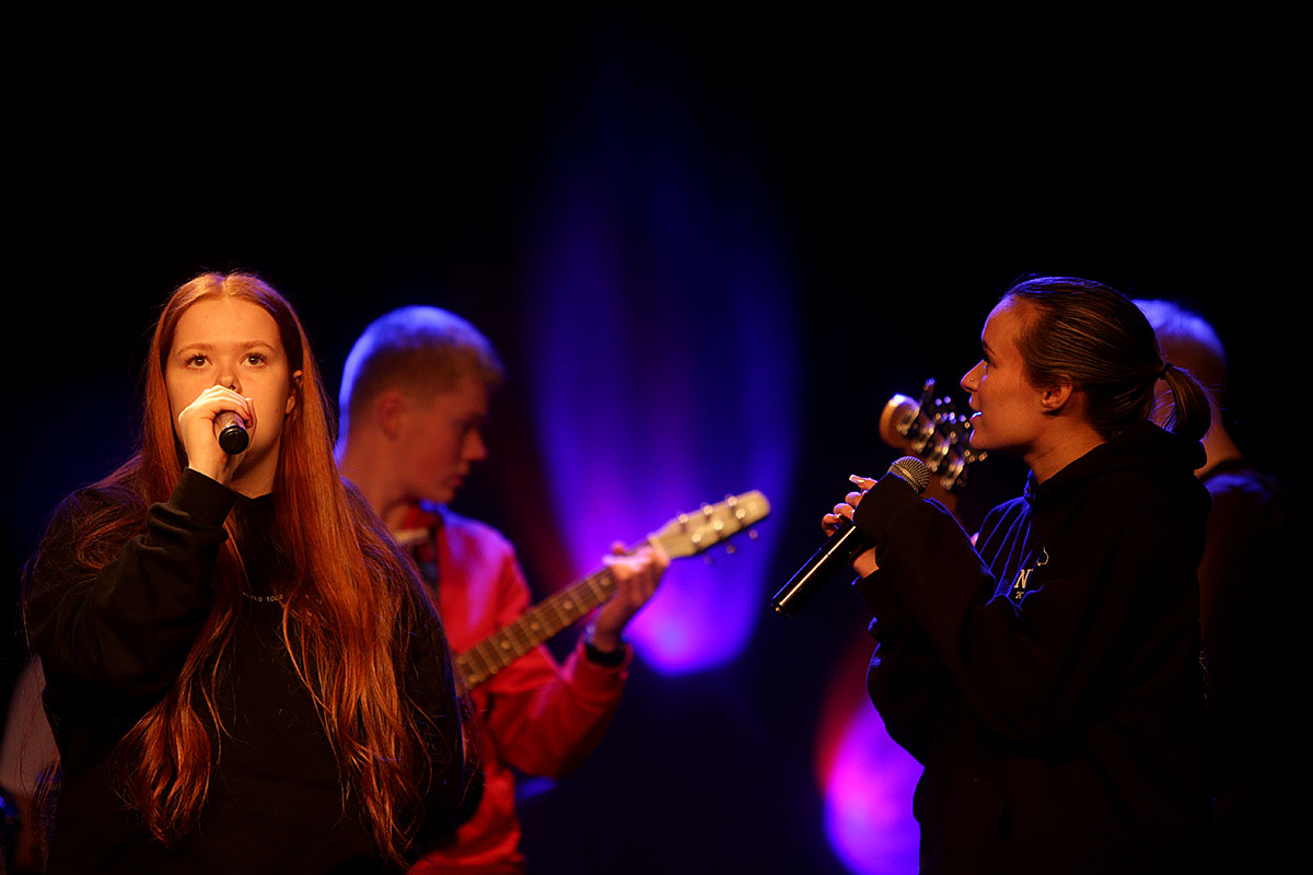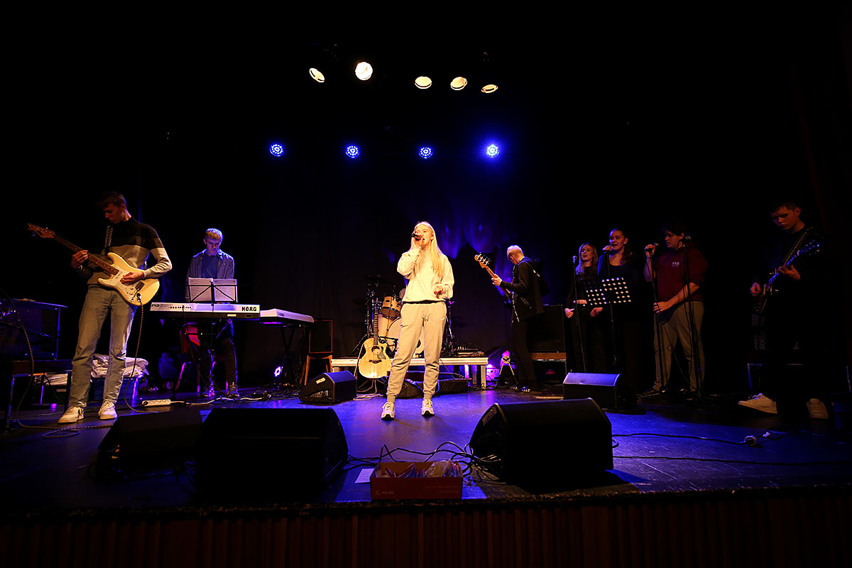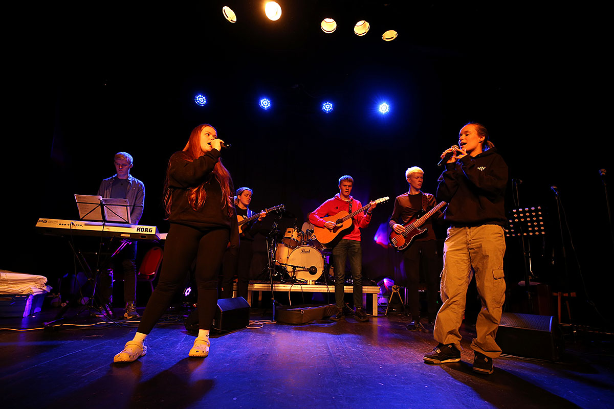 Okkur fannst gaman í fyrra og hópurinn náði vel saman þannig að við ákváðum að halda áfram,“ sagði Dögun Óðinsdóttir, formaður TME í viðtali við Austurgluggann í tengslum við tónleikana sem haldnir voru með íslenskum rokklögum. Meðfylgjandi myndir voru teknar við það tilefni.