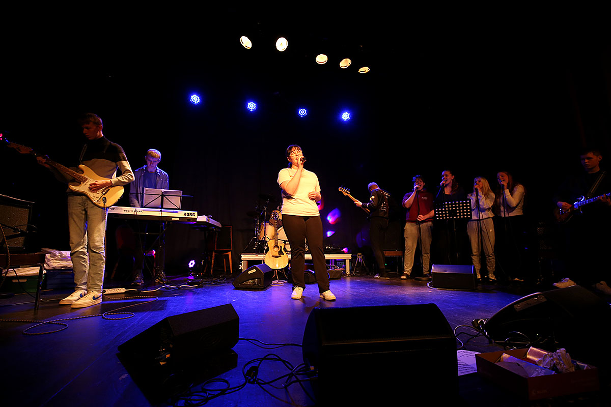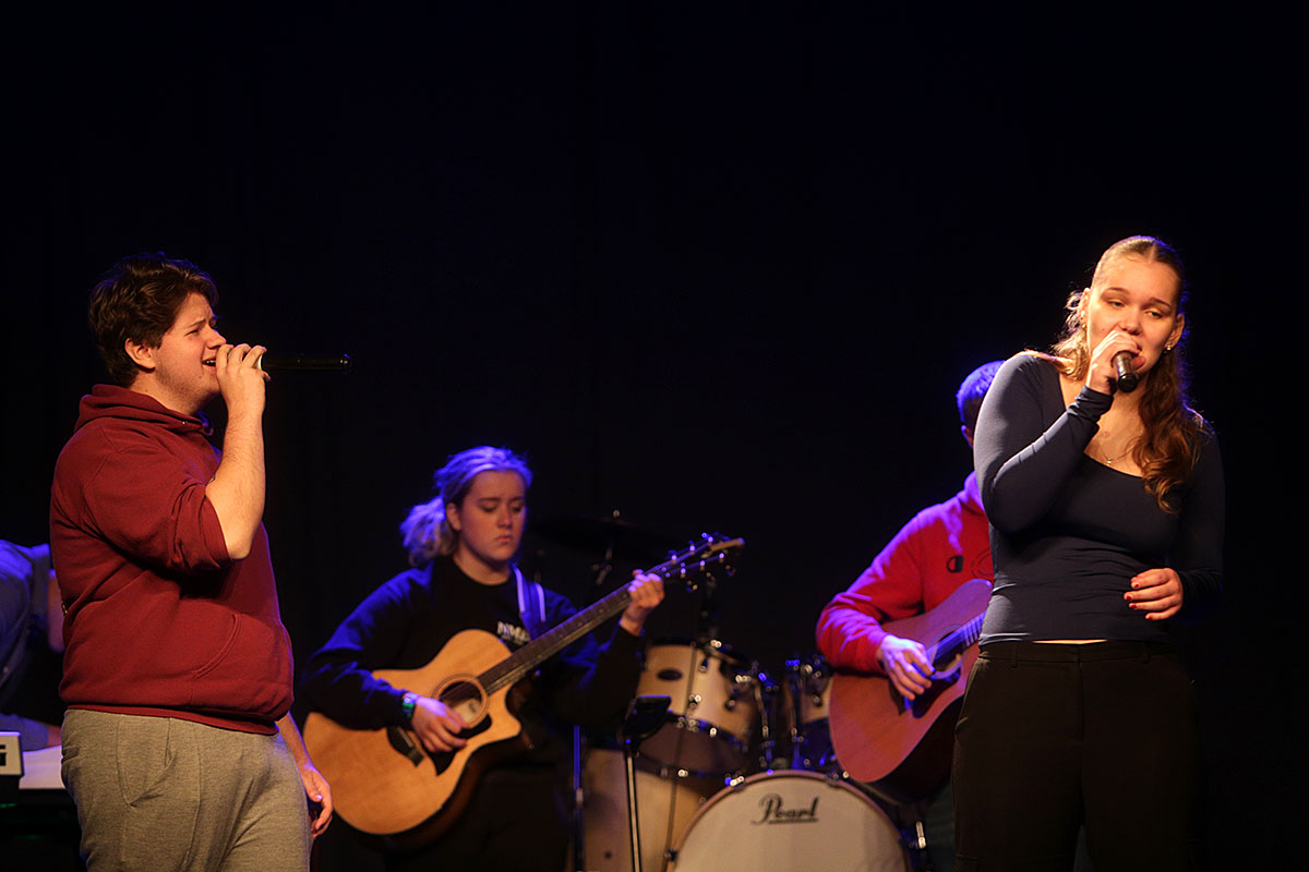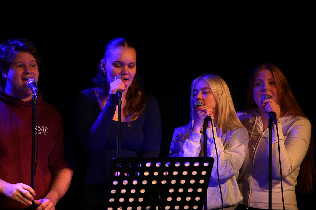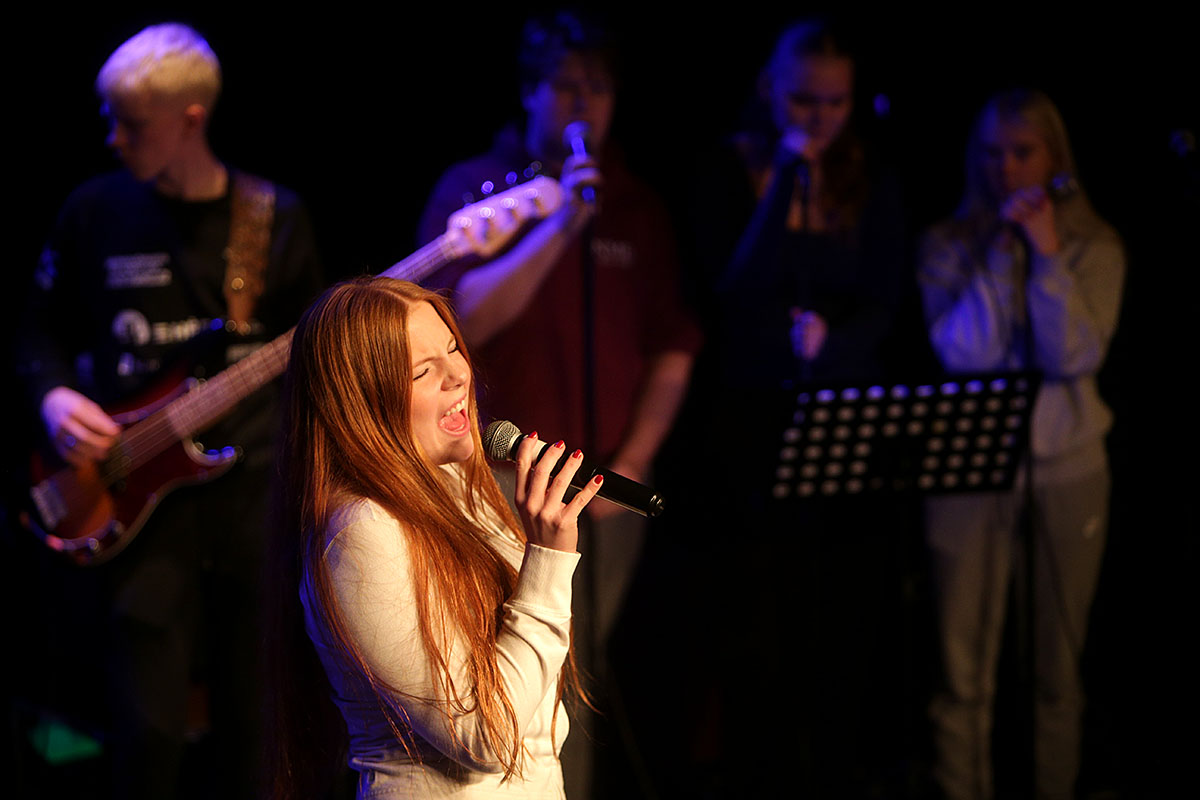 Okkur fannst gaman í fyrra og hópurinn náði vel saman þannig að við ákváðum að halda áfram,“ sagði Dögun Óðinsdóttir, formaður TME í viðtali við Austurgluggann í tengslum við tónleikana sem haldnir voru með íslenskum rokklögum. Meðfylgjandi myndir voru teknar við það tilefni.