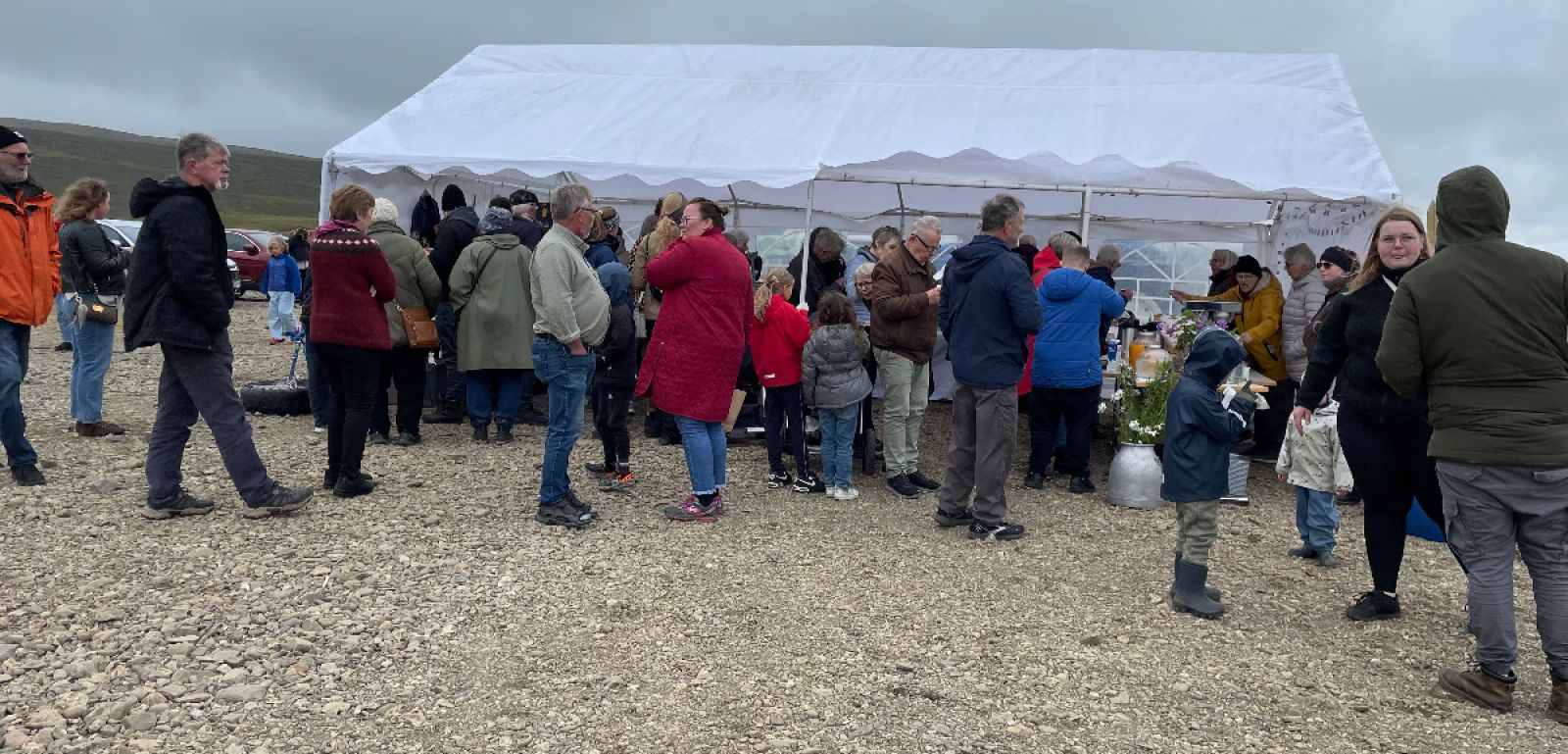 Ein sex lögbýli í landinu opnuðu fyrir gestum á sunnudaginn var á Beint frá býli deginum og þar bæði skemmtun og krásir í boði.Þrátt fyrir gjólu var umferðin mikið að Lynghóli í Skriðdal eins og sjá má. Mynd Oddný Anna Björnsdóttir