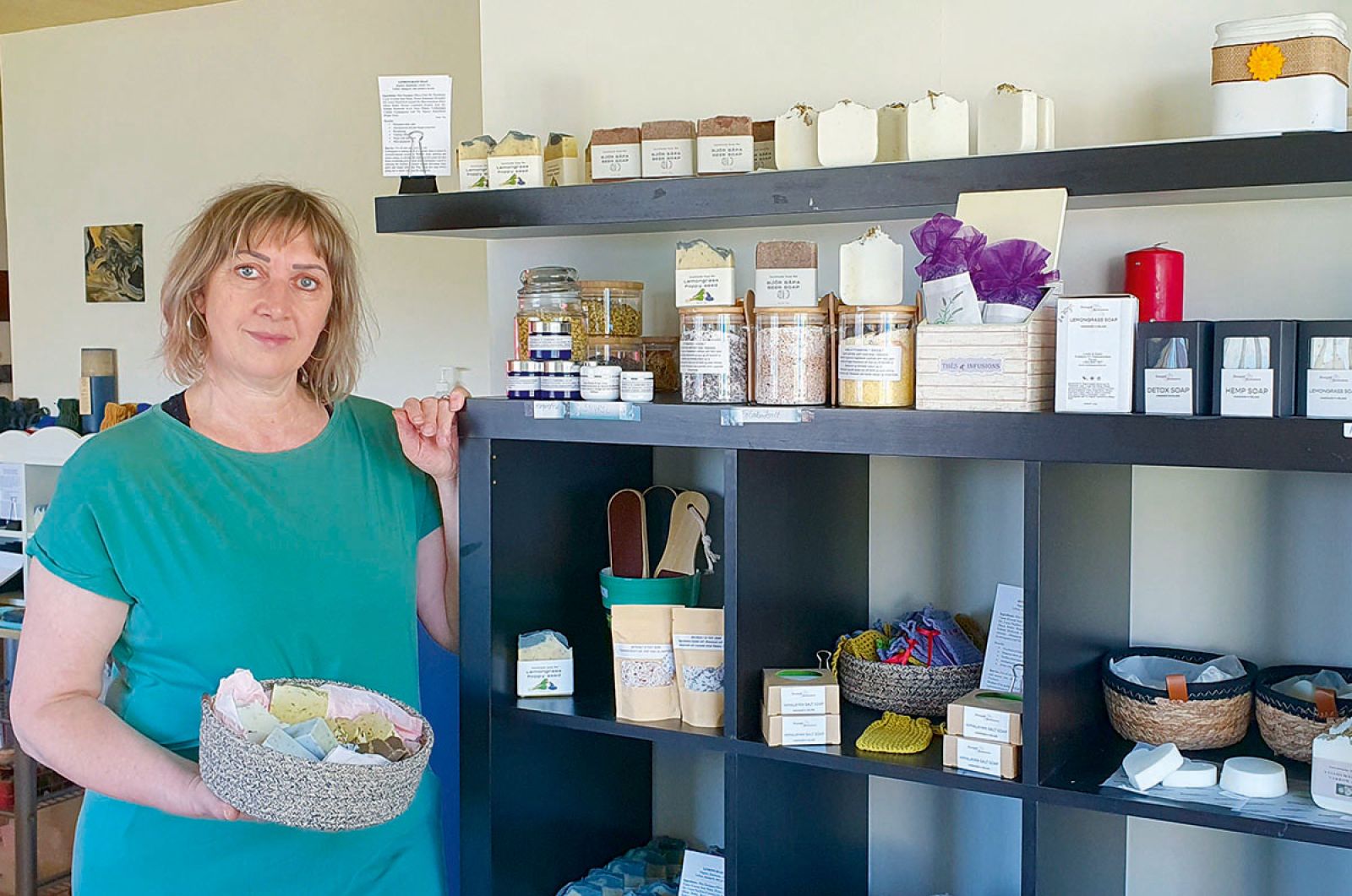 Hún ákvað því að fjarlægja efnasamböndin og byrjaði að framleiða fyrir sig og fjölskylduna. Í dag framleiðir hún sápur, snyrtivörur, nuddolíur, baðsölt, varasalva og fleira. „Ég féll alveg fyrir þessari list. Ég hef alltaf haft góða kunnáttu á allskonar jurtum og nýtti mér það.“