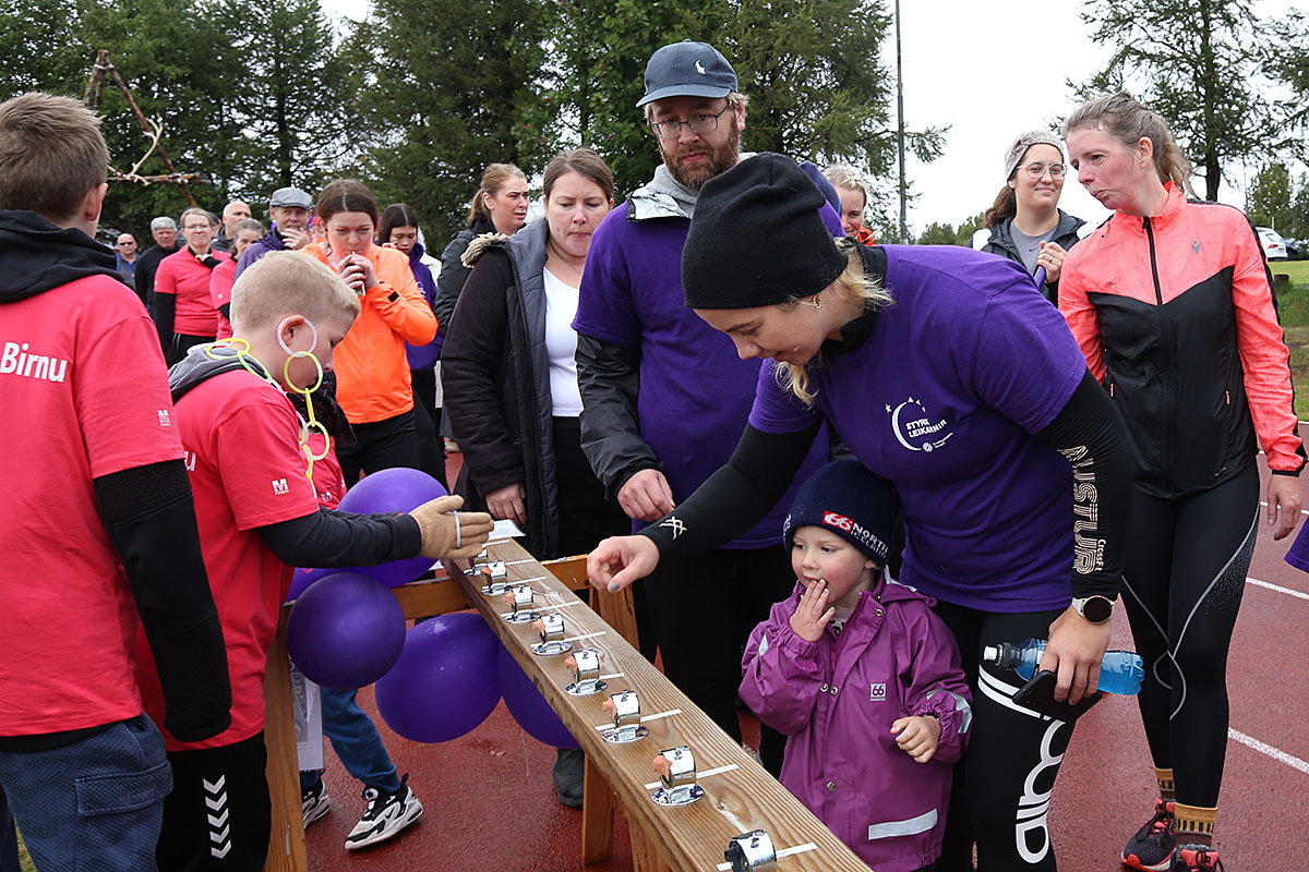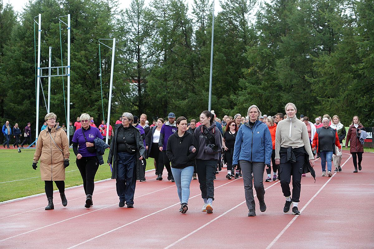 Þátttakendur í Styrkarleikunum, sem fram fóru á Vilhjálmsvelli um helgina, gengu samtals 6.942 kílómetra. Gengið var til styrktar Krabbameinsfélagi Íslands. Líkt og í lífinu skiptust á skin og skúrir á vellinum.