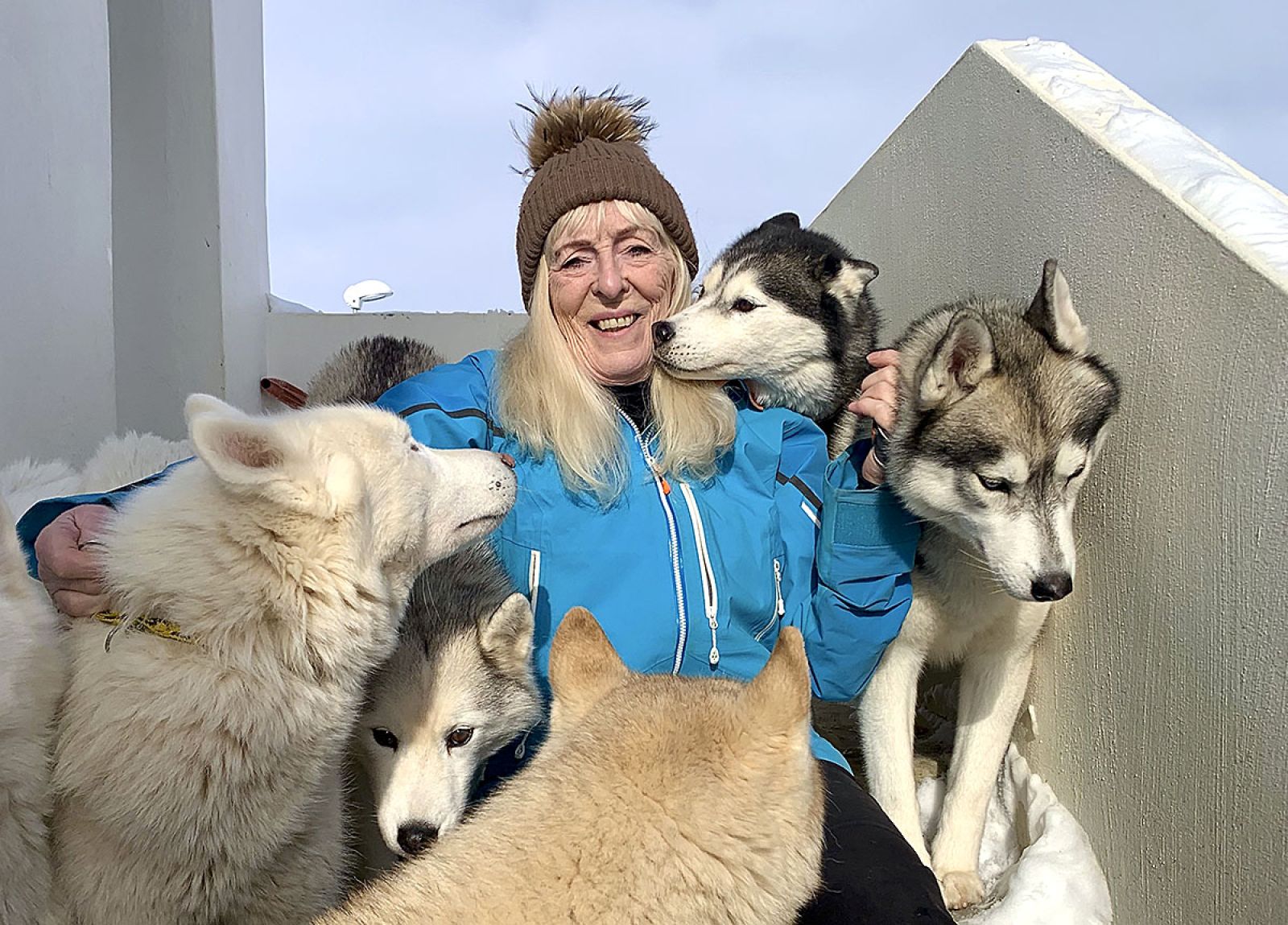Hjördís býr ein nú á bænum Gunnlaugsstöðum á Völlum og nýtur lífsins með hundunum sínum, sem allir eru hreinræktaðir Siberian Husky. „Það er alveg dásamlegt að búa hér og ég er aldrei einmana. Ég hef aldrei gefið mér tíma til að láta mér leiðast, hef alltaf eitthvað fyrir stafni,“ segir hún.