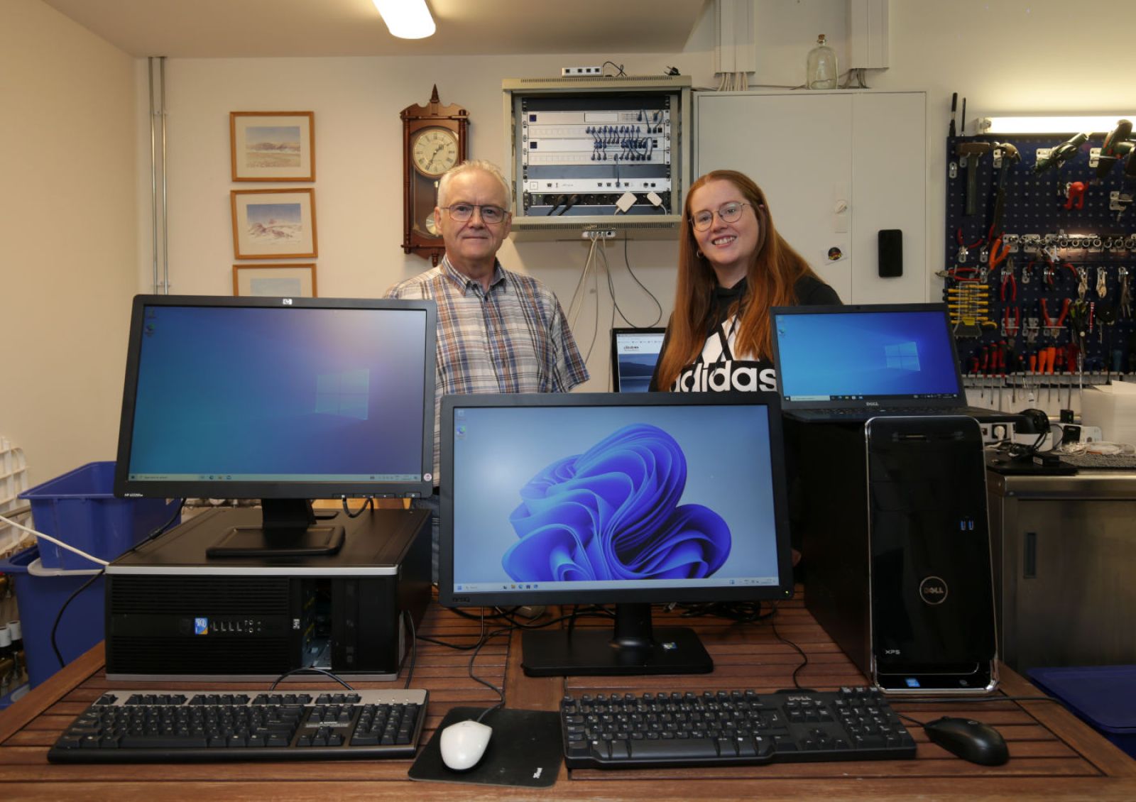 Hressir við gamlar tölvur og afhendir félagsþjónustunni