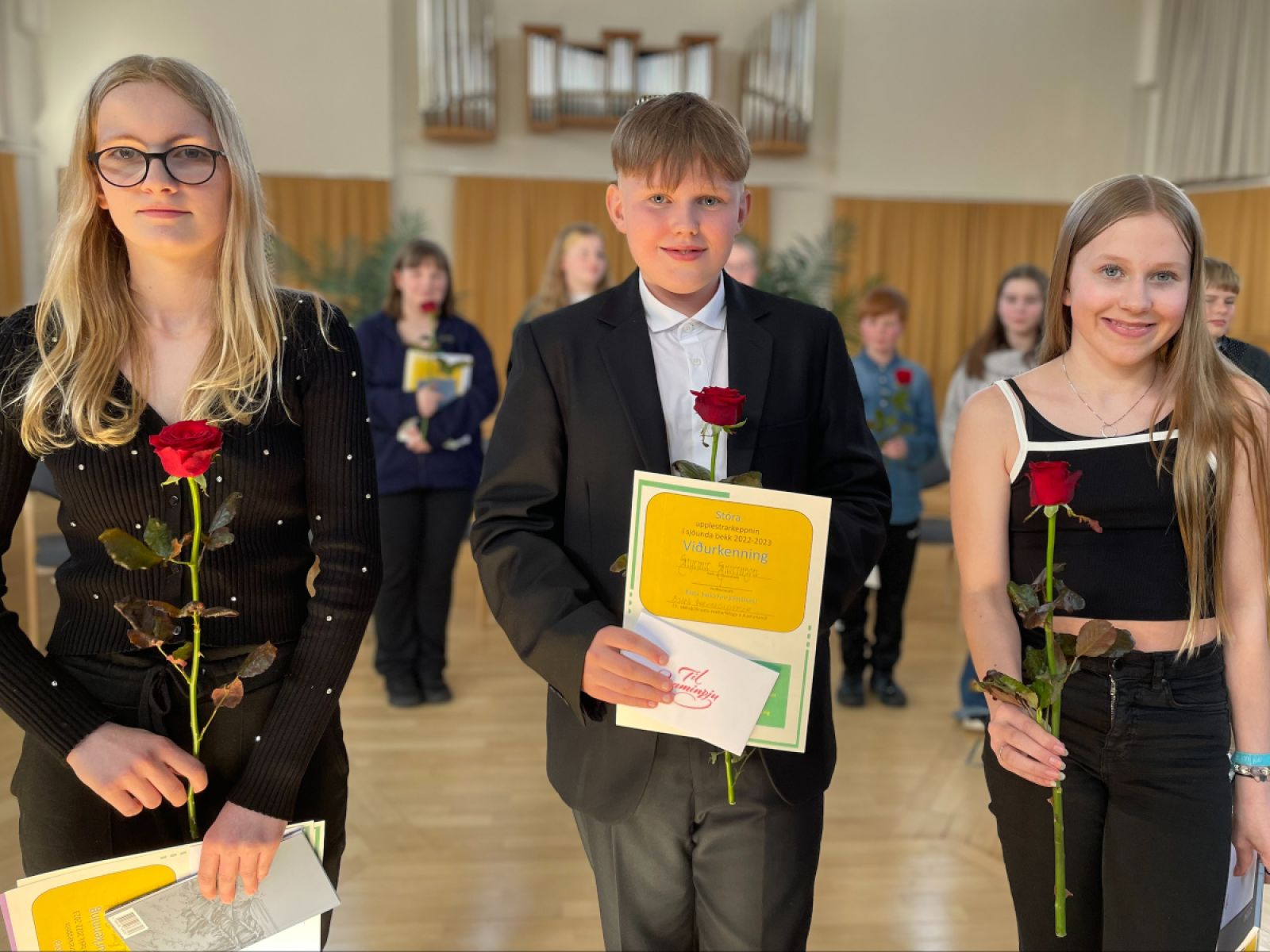 Að þessu sinni þóttu þau Styrmir Snorrason úr Nesskóla, Hekla Bjartey Davíðsdóttir úr Eskifjarðarskóla og Sólný Petra Þorradóttir úr Grunnskóla Fáskrúðsfjarðar framúrskarandi og fengu fyrir vikið bókarverðlaun, viðurkenningar og rósir í þokkabót. Fengu krakkarnir dynjandi lófatak úr salnum í langan tíma í lokin.