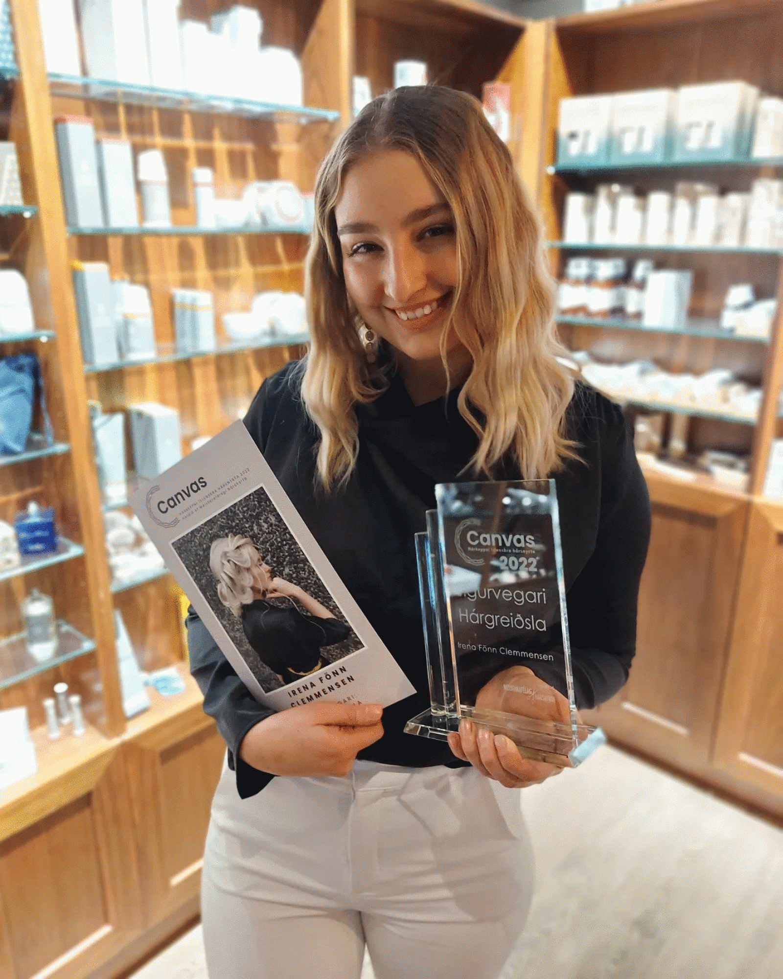 Irena Fönn Clemmensen, Norðfirðingur, vann til verðlauna á hársnyrtikeppni Canvas sem er á vegum Meistarafélags Hársnyrtisveina á Íslandi. Hún vann tvenn verðlaun, annars vegar fyrir hárgreiðslu og hins vegar fyrir bjarta liti. „Ég er afar sátt með árangurinn og held áfram og stefni hærra,” segir Irena Fönn.