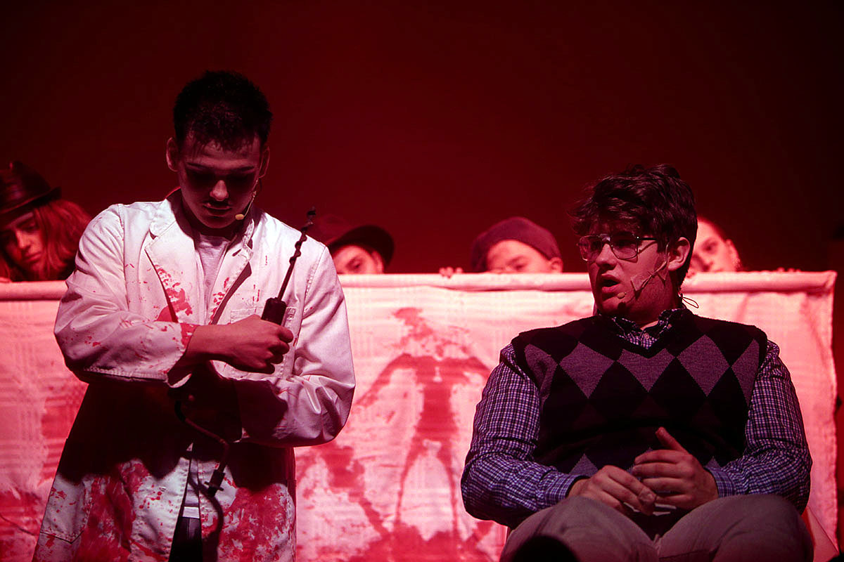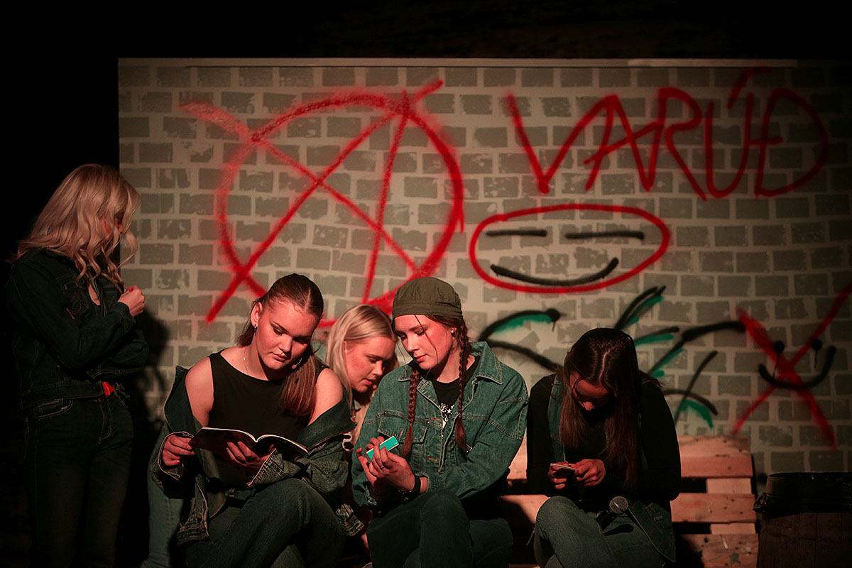 „Stemmingin í hópnum er mjög góð, það eru allir slakir. Við stefnum saman í Vök og hittumst aftur í Sláturhúsinu tveimur tímum fyrir sýningu til að gera okkur tilbúin og mynda stemmingu,“ segir Hekla Pálmadóttir, formaður LME sem fer með eitt af aðalhlutverkum sýningarinnar.
