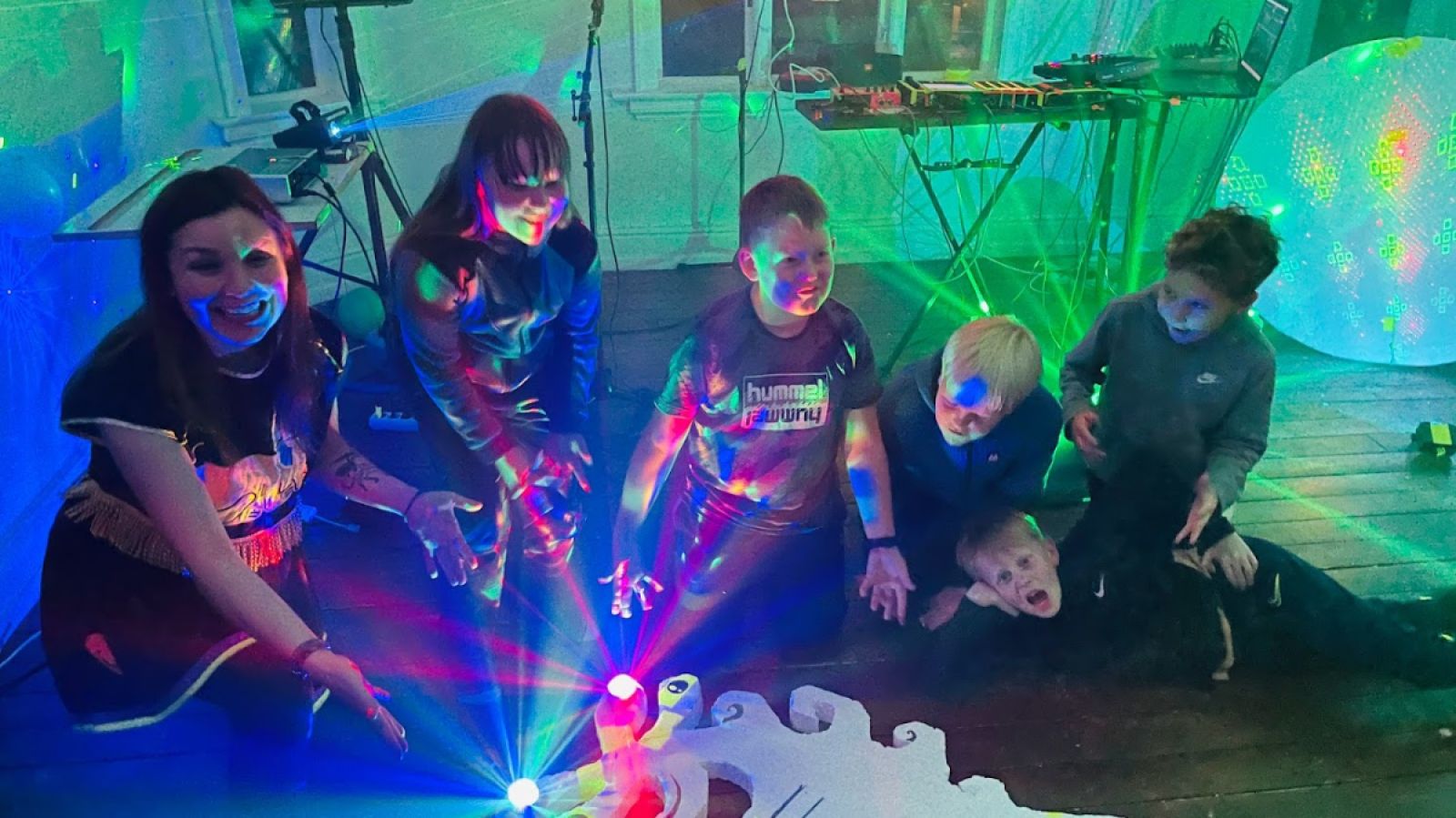 DJ flugvél og geimskip með þétta tónlistardagskrá fyrir ungmennin en aukinheldur helling af skemmtilegur tækjum og tólum sem allir kunnu vel að meta. Mynd Menningarstofa Fjarðabyggðar.