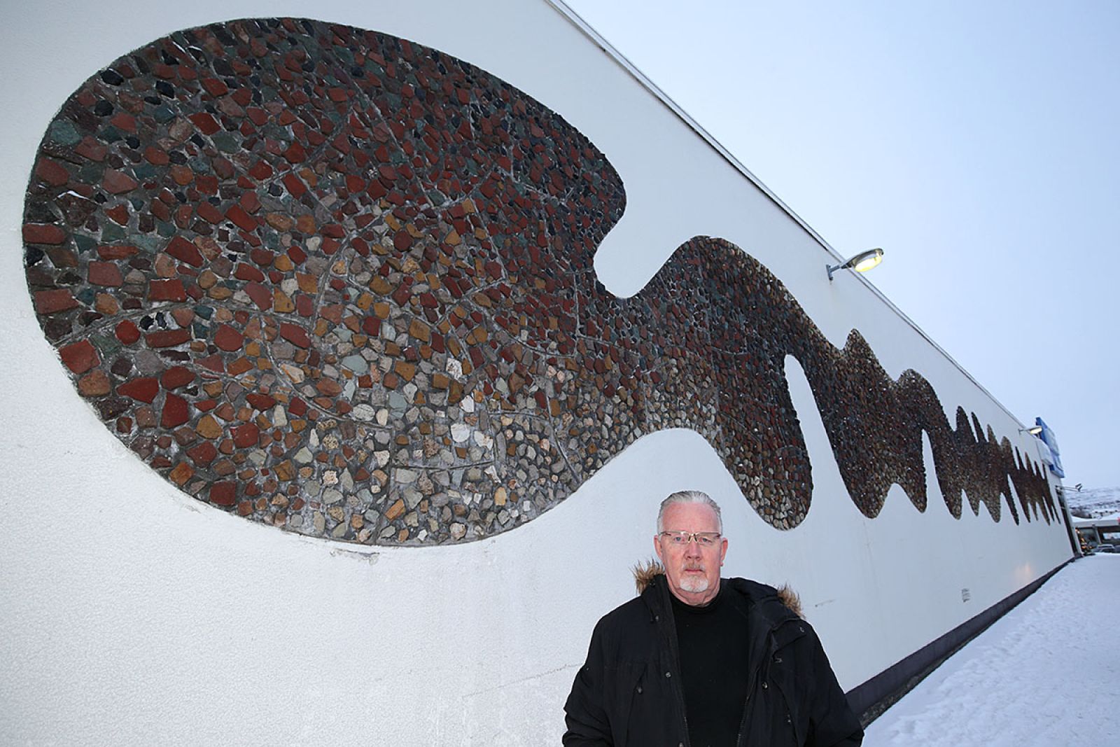 Magnúsi þykir vænt um verkið utan á Kaupfélagshúsinu. „Mér finnst það alltaf jafn flott. Stundum hef ég óttast að einhver átti sig ekki á hvað þetta er merkilegt verk og máli yfir það. Hringur var frægur listamaður og sennilega er þetta með stærri mósaíkverkum úr náttúrusteini hérlendis,“ segir Magnús og bætir við að það að taka þátt í og fylgjast með gerð verksins hafi vakið listáhuga hjá honum.
