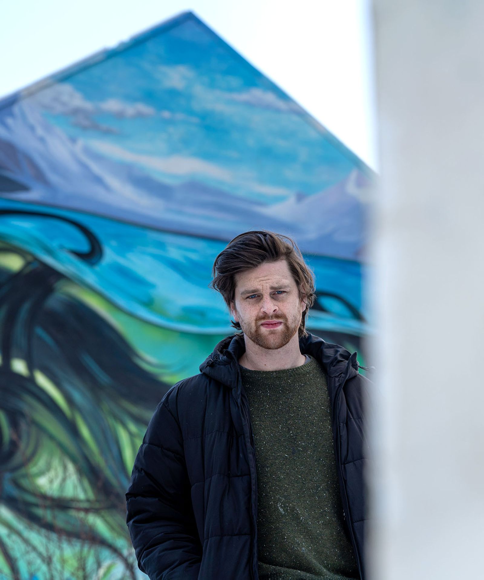 Myndlistarmaðurinn Aron Leví Beck opnar á laugardag sína fyrstu einkasýningu eftir að hafa flust austur á Reyðarfjörð fyrir um ári í húsnæðinu sem áður hýsti Austmat. Aron Leví kom austur til að taka við starfi skipulags- og byggingafulltrúa í Fjarðabyggð sem hann segir fara vel saman við myndlistina.