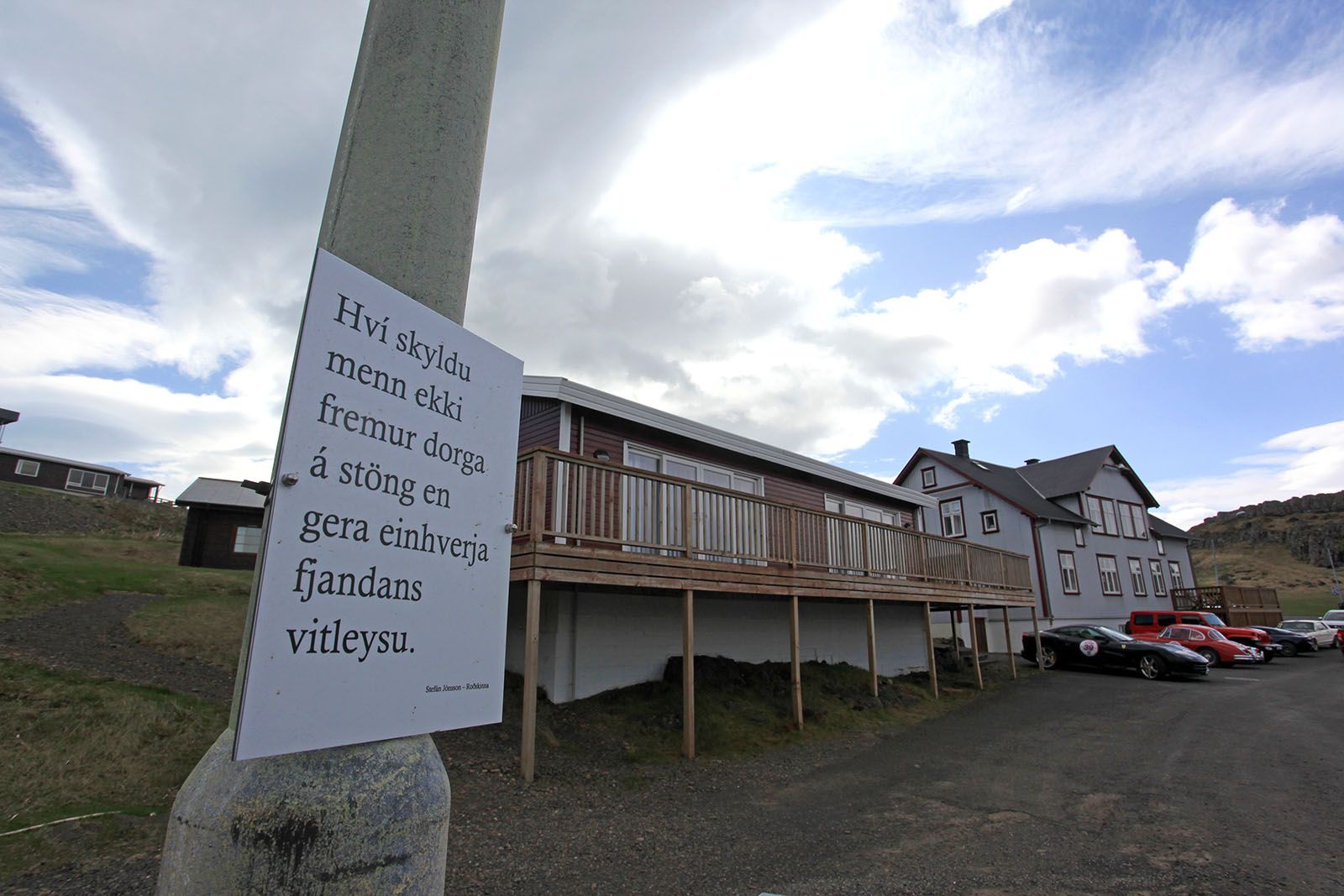 Kristján segir uppátækinu hafa verið vel tekið. „Ég vildi útbúa skiltin þannig að gestir og gangandi gætu skemmt sér við að lesa tilvitnanirnar og velta fyrir sér lífinu og tilverunni. Íbúarnir voru mjög áhugasamir fyrst eftir að skiltin komu upp, tóku myndir og settu á Facebook. Oft fundust lýsingar sem pössuðu skemmtilega við suma í bænum í dag. Við sjáum Íslendingana sem koma hingað í sumar stoppa og skoða.