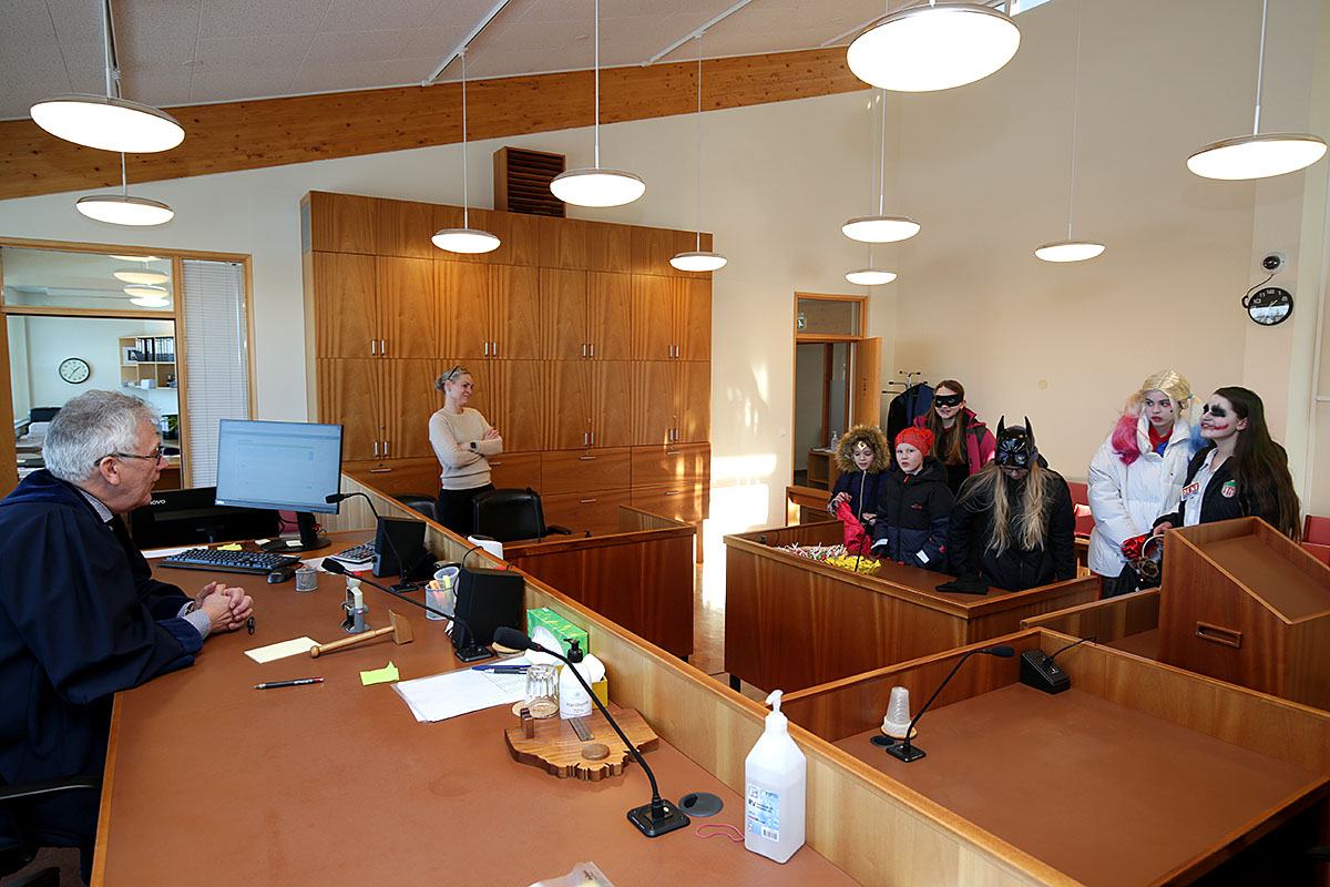 „Ég lít svo á að þetta sé líka smá kynning um dómstólinn sem hefur dómsal sem að mínu viti er mjög fallegur á landsvísu. Að þau sjái ekki bara dómsal í bíómyndum heldur líka í rauninni.“