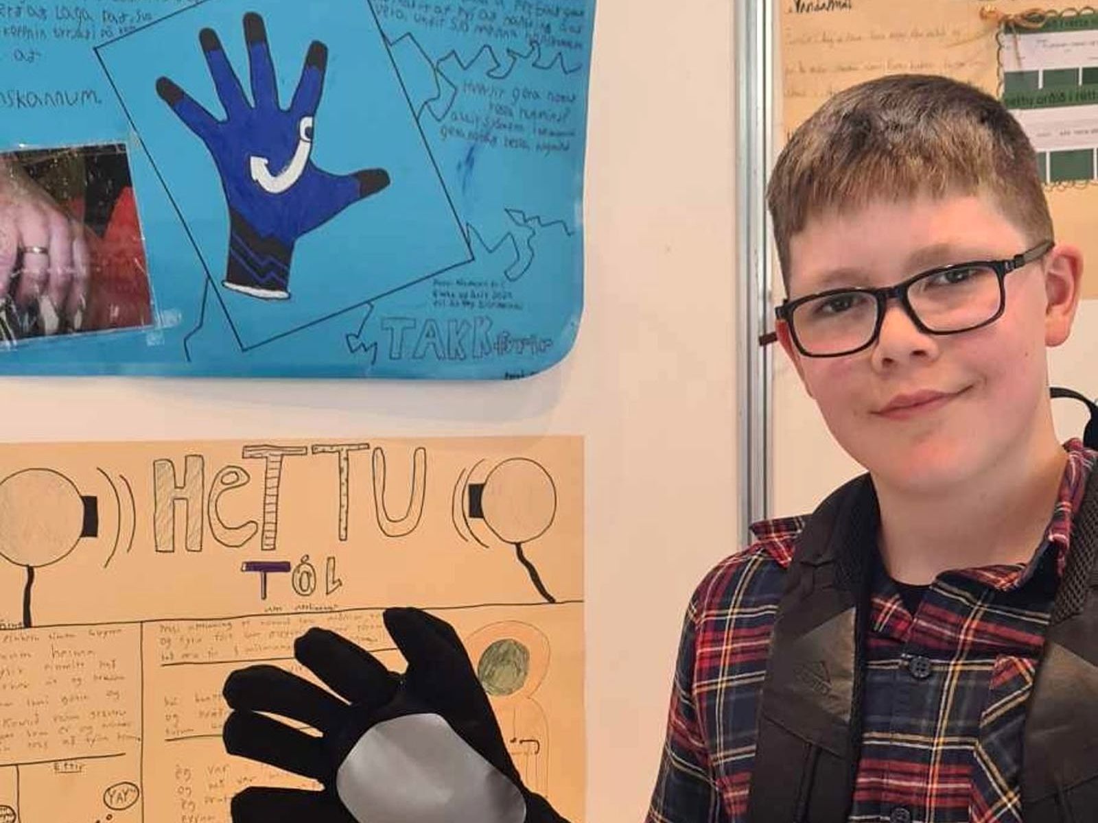 Þorri Pálmason á Djúpavogi fékk nýverið viðurkenningu í Nýsköpunarkeppni grunnskólanna og sérstakan forvarnabikar keppninnar fyrir hanska til að vernda línuveiðisjómenn fyrir því að fá krókana í hendurnar.