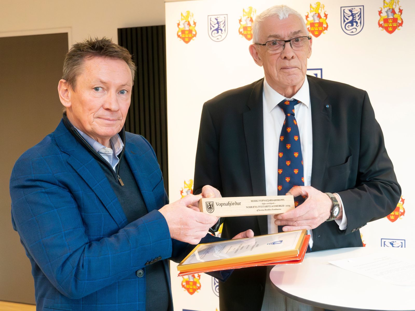 Lífið Merki Vopnafjarðar valið norrænt sveitarfélagsmerki ársins Norræn áhugamannasamtök um skjaldarmerkjafræði sem árlega kjósa norrænt sveitarfélagsmerki ársins völdu fyrir skemmstu merki Vopnafjarðarhrepps sem merki þessa ársins.
